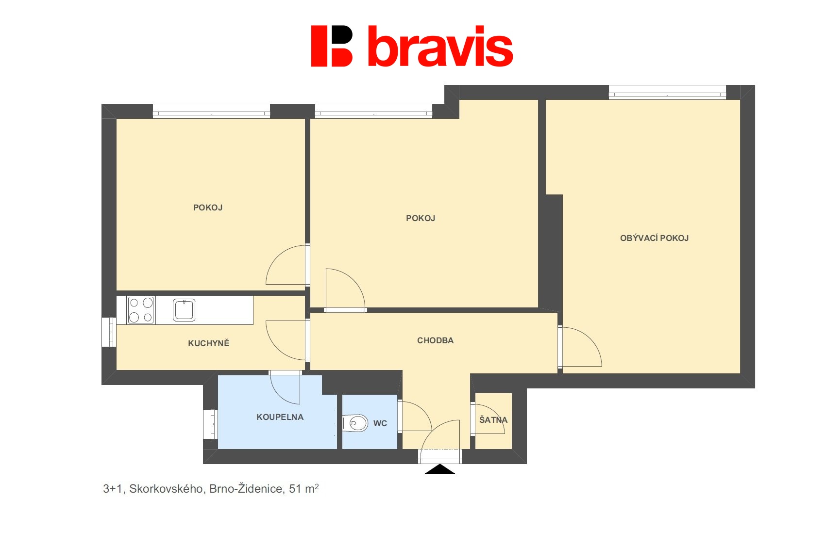 | Dispozice/podlahová plocha: | 3+1/51 m² |