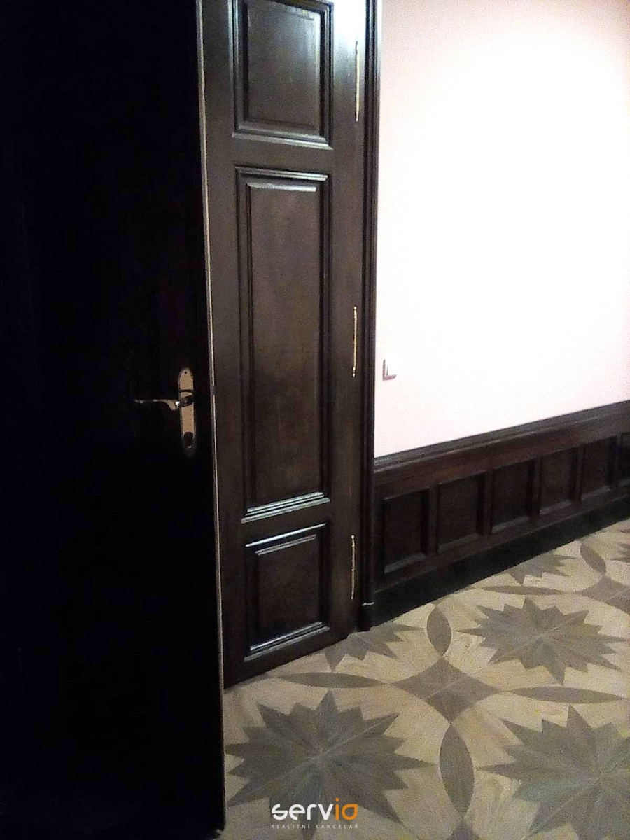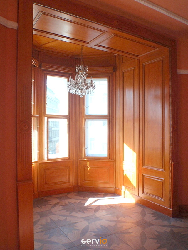 Jedná se o nejhezčí secesní rohový byt v domě, který byl v roce 2016 kompletně zrekonstruován. Byt má dvě WC (+bidet), původní křišťálové lustry, na podlaze velkoformátovou dlažbu, původní repasované vstupní dveře a krb (tento je jen dekorativní a není možné jej užívat) a je vybaven kuchyňskou linkou s led osvětlením, ve které je nainstalovaná vestavná el. trouba, sklokeramická varná deska, myčka nádobí a digestoř s tukovým filtrem a dvěma uhlíkovými filtry. Dále je součástí vybavení bytu lednice. V místnosti sociálního zázemí je vyjma WC a bidetu rohová vana, umyvadlo se spodní a horní skříňkou s led osvětlením a vývod na pračku. Předmětem nájmu je i nově vybudovaný sklep o rozloze cca 6 m2 v 1. PP domu.