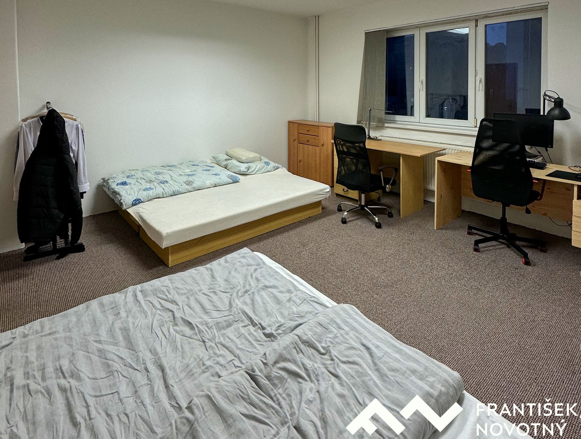 Byt se nachází ve 2. nadzemním podlaží a dispozičně je velmi prakticky řešen – obytné pokoje jsou neprůchozí, což z něj dělá ideální bydlení i spolubydlení.
