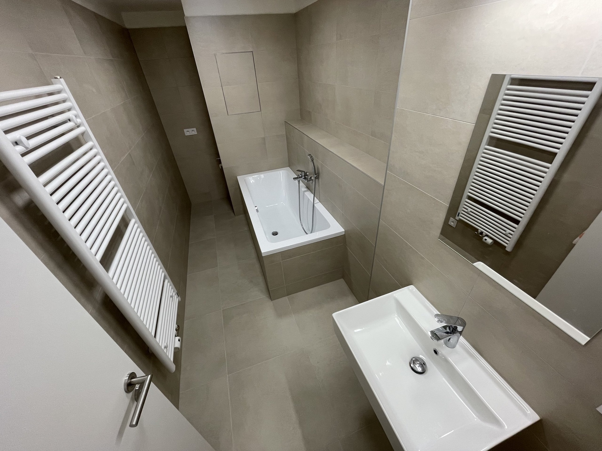 Vybavení: Kvalitní vinylová podlaha, nová rohová kuchyňská linka s vestavnými spotřebiči (indukční deska, horkovzdušná trouba, digestoř, myčka (60 cm), lednice s mrazákem. V koupelně je prostor pro pračku i sušičku. Pro maximální komfort a soukromí jsou okna vybavena venkovními žaluziemi.