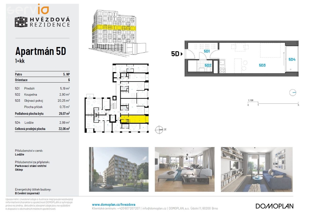 | Dispozice/podlahová plocha: | 1+kk/32 m² |