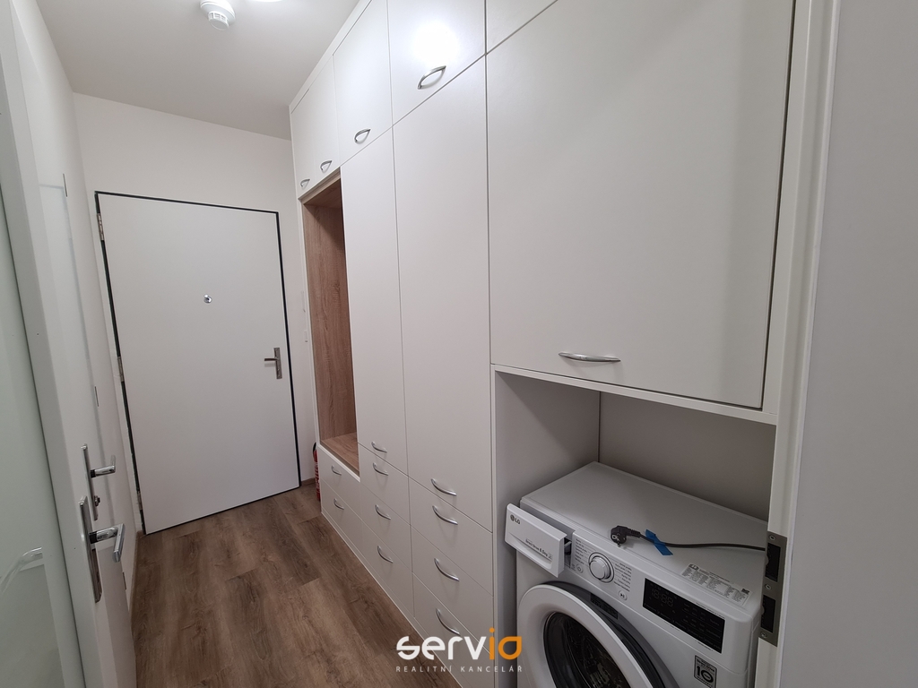 Součástí jednotky je moderně vybavená koupelna (sprcha nebo vana, WC, umyvadlo, galerka se zrcadlem, věšáky, pračka), kompletní KL včetně spotřebičů (myčka, trouba, sporák), vinylová podlaha, jídelní stůl a židle, možnost dovybavení postelí (jednolůžko, dvojlůžko), předsíňový nábytkový program, a další vybavení dle domluvy s majitelem. Fotky mohou být ilustrační, z podobného bytu. Ke každému bytu náleží sklep. Objekt zabezpečen kamerovým systémem. Možnost pronájmu krytého PS za poplatek 2.000,-Kč/měs. + DPH. Volné ihned.