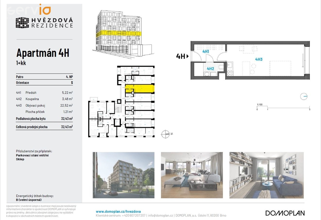 | Dispozice/podlahová plocha: | 1+kk/32 m² |