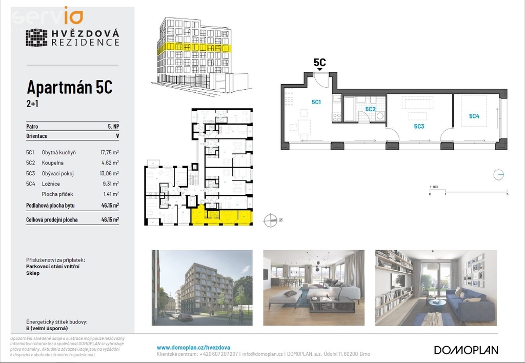 Nabízíme exkluzivně pronájem bytu 2+1 o velikosti 46,15 m2, v 5.NP s výtahem, sklepem a možností pronájmu krytého PS v objektu Rezidence Hvězdová, polyfunkční dům obklopený městským parkem, odkud je to na brněnské náměstí Svobody procházkou deset minut.