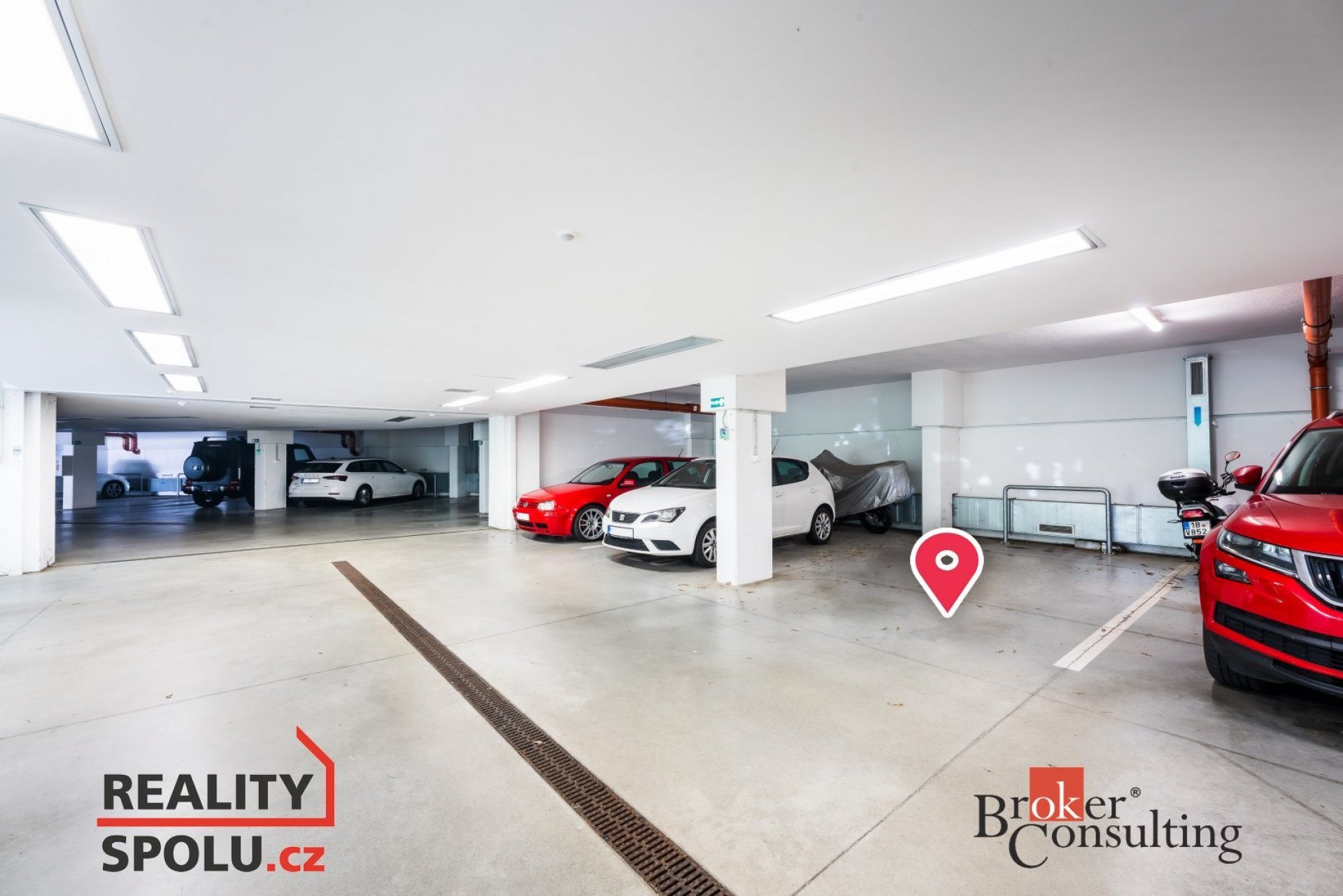 Součástí bytu je parkovací stání v garáži v suterénu domu, které je zahrnuto v ceně pronájmu. Pohodlný výjezd výtahem vás doveze přímo ke vstupu do bytu. Na stejném patře se nachází také uzamykatelný úložný prostor o velikosti cca 2 m², vhodný například pro kola, sezónní věci nebo sportovní vybavení.