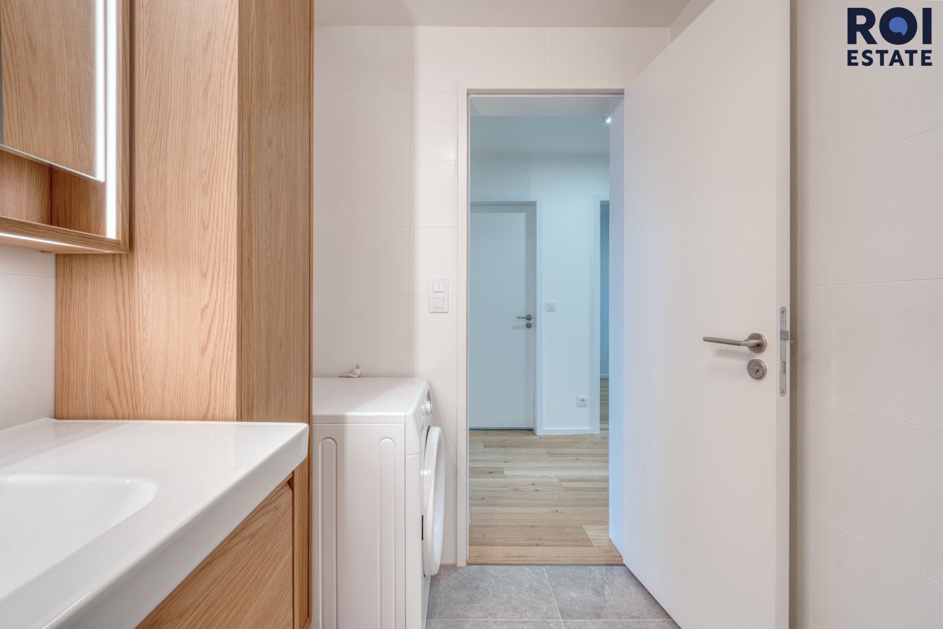 Byt působí světlým, vzdušným a elegantním dojmem. Dominantou je obývací pokoj s kuchyňským koutem a přímým vstupem na terasu, která nabízí ideální místo pro ranní kávu, večerní sklenku vína i obyčejný odpočinek po práci.