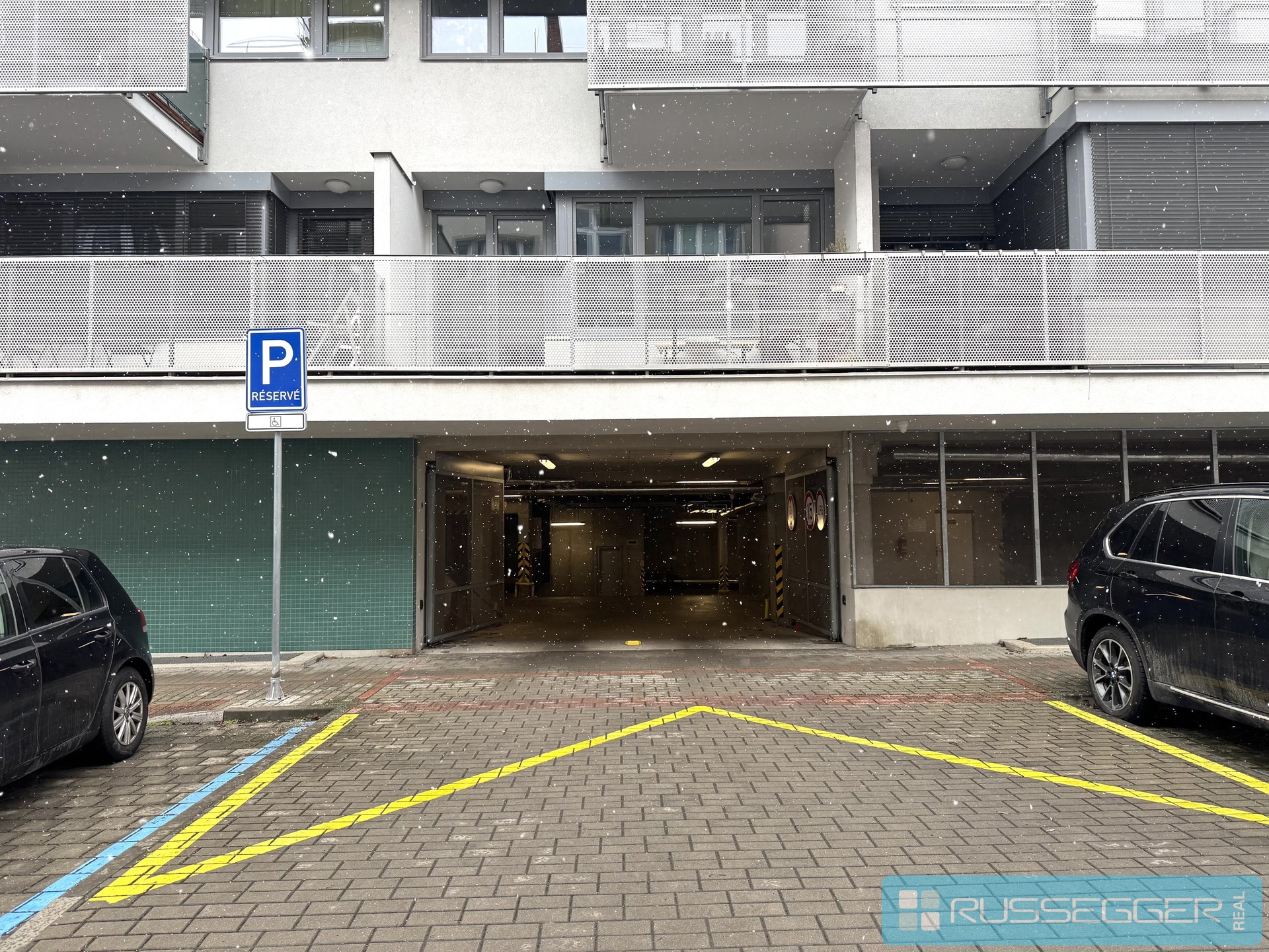 Stání se nachází v 1. podzemním podlaží (1.PP), přístupné standardním sjezdem – nejedná se o zakladač.