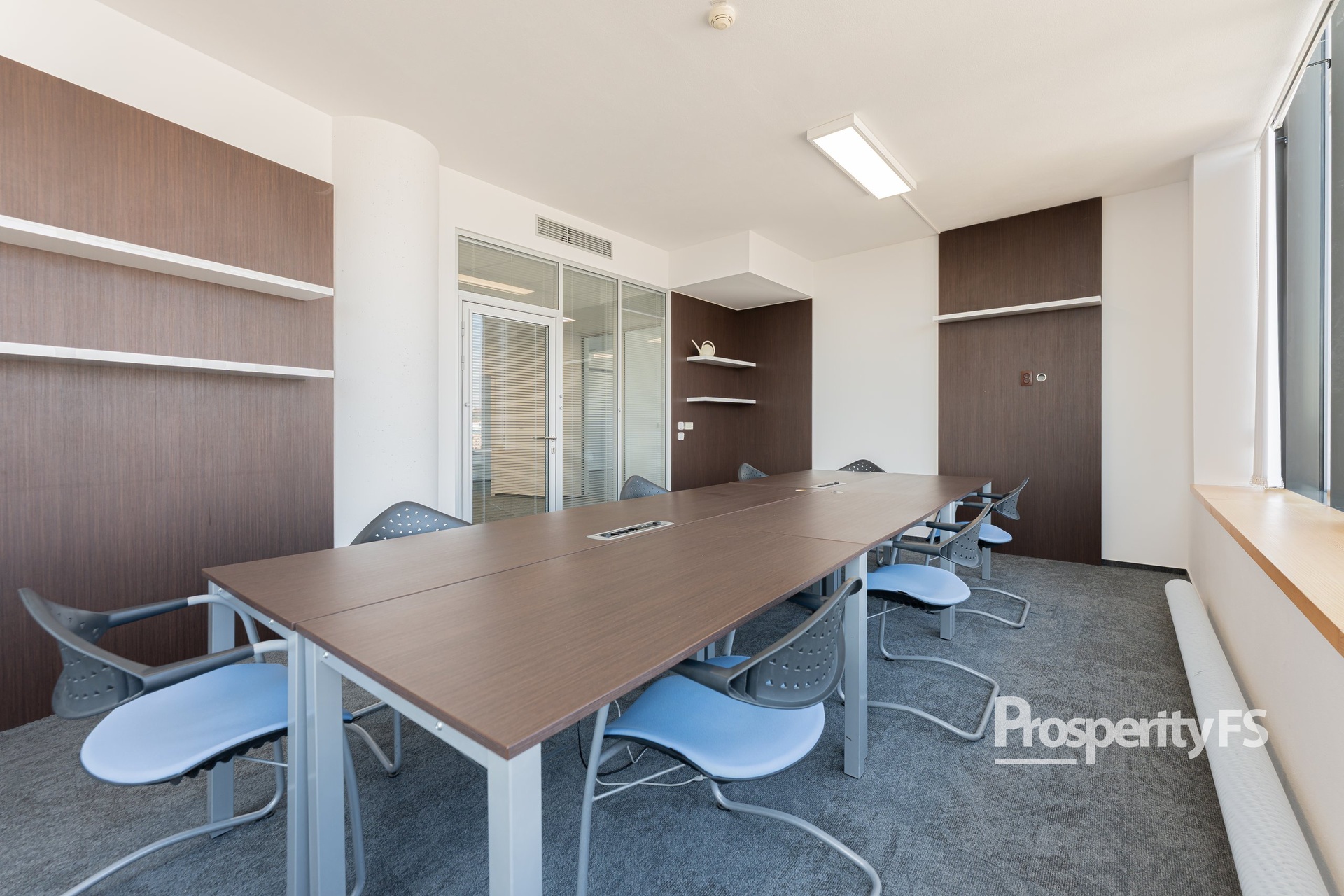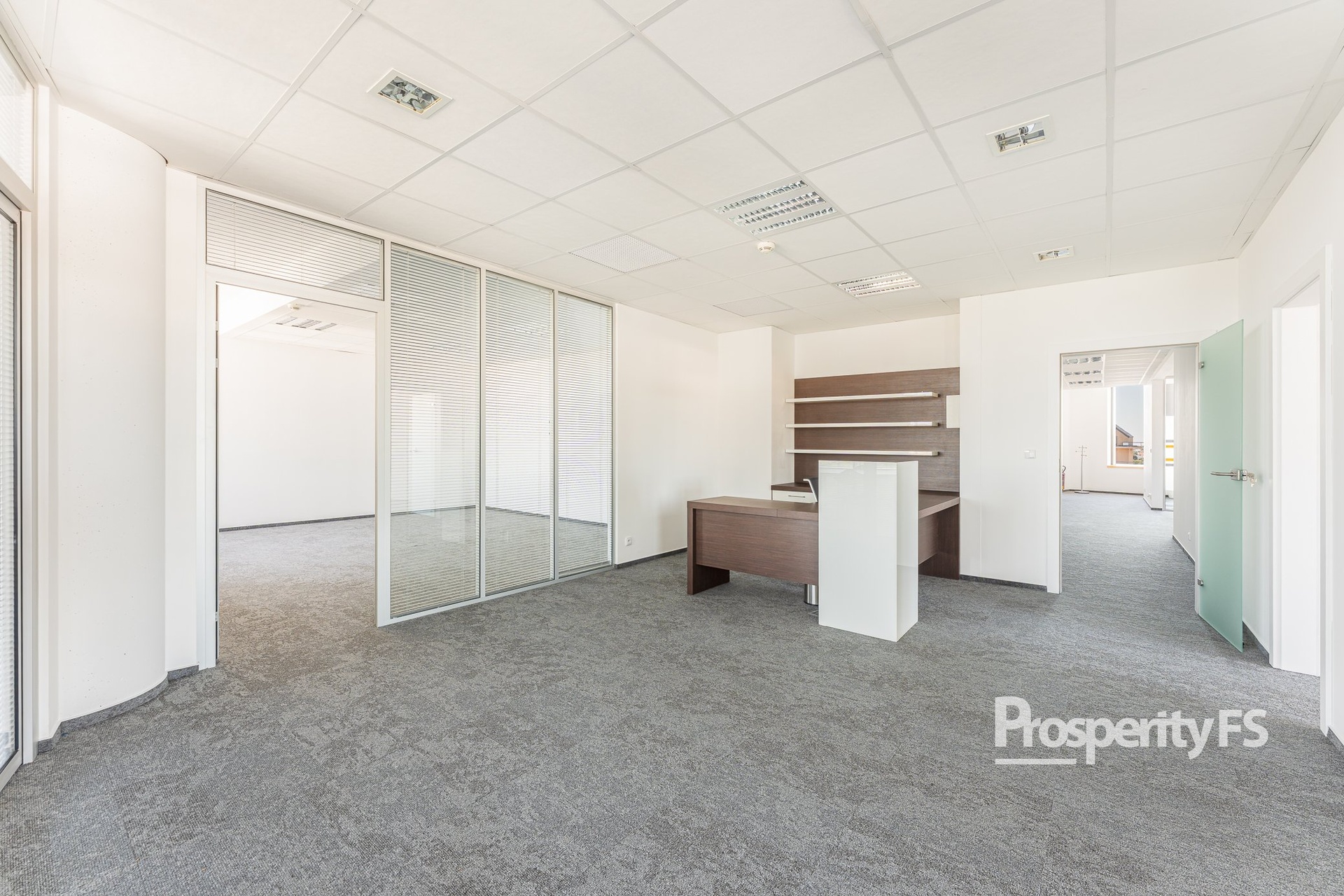 Kancelář je plně klimatizovaná, vybavená žaluziemi a vstup je zajištěn přes čipovou kartu.