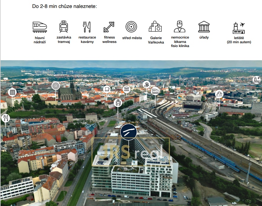 Prominentní adresa Business Complexu TITANIUM v samém centru města Brna nabízí uživatelům docházkovou vzdálenost do všech částí centra města a přístup k množství klíčových služeb, které obohatí život, šetří čas a zkvalitňují pracovní prostředí. V bezprostřední blízkosti naleznete hlavní úřady, obchody včetně nákupní Galerie Vaňkovka, množství restaurací, banky, sportovní zařízení, wellness, zdravotní služby, poštu a množství dalších služeb. Pokud Vás nabídka zaujala, ozvěte se makléři. Rádi Vám také zajistíme přehled, co se v Brně aktuálně nabízí a bude dostupné v budoucnu.