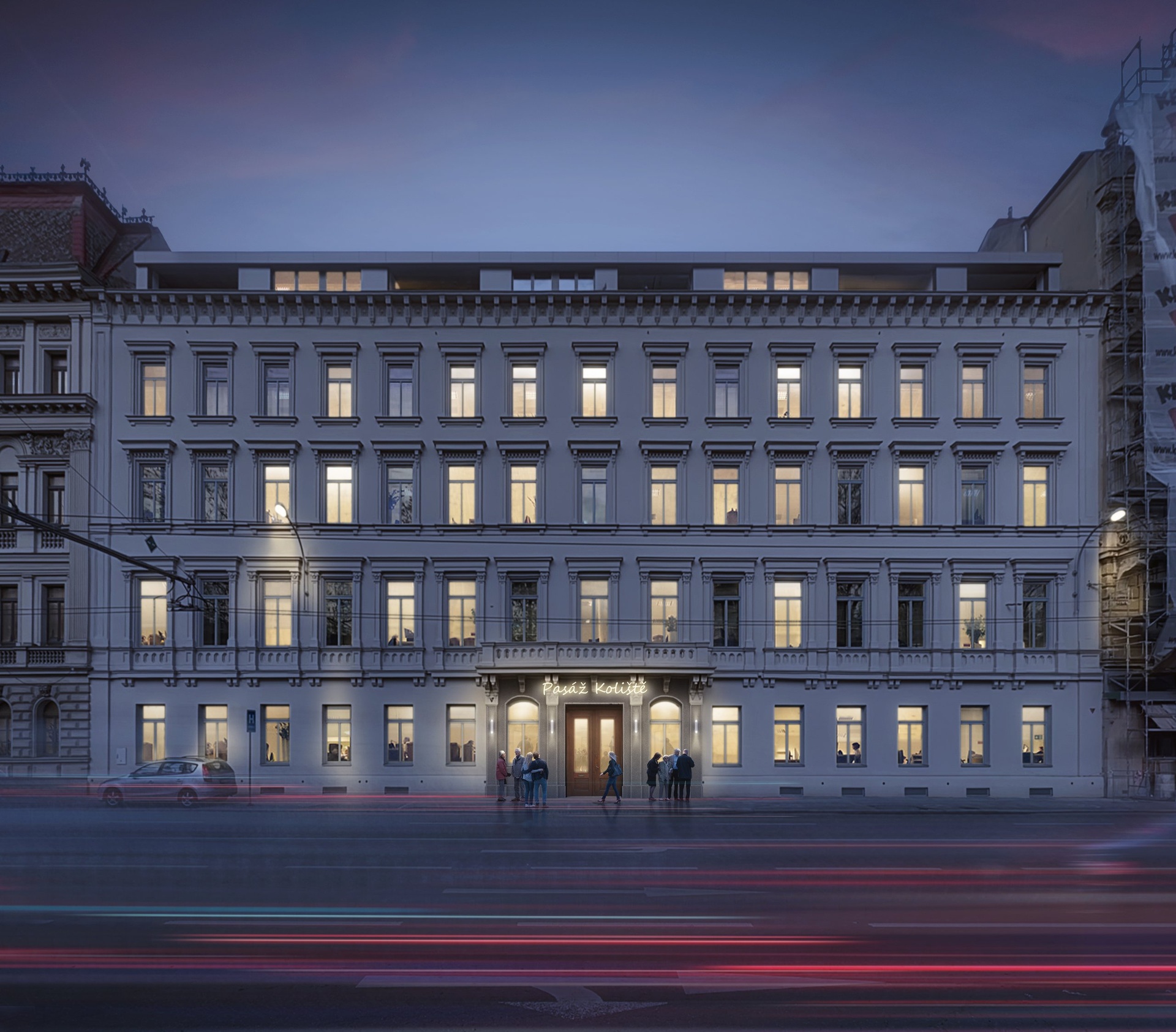 Během rekonstrukce polyfunkčního domu byl zachován jeho původní charakter – historické klenby u vstupu, obloukové schodiště i reprezentativní pasáž Koliště, která celému objektu dodává prestižní atmosféru. V interiérech domu byly použity kvalitní a nadčasové materiály, které zajišťují dlouhou životnost a nízké nároky na údržbu.