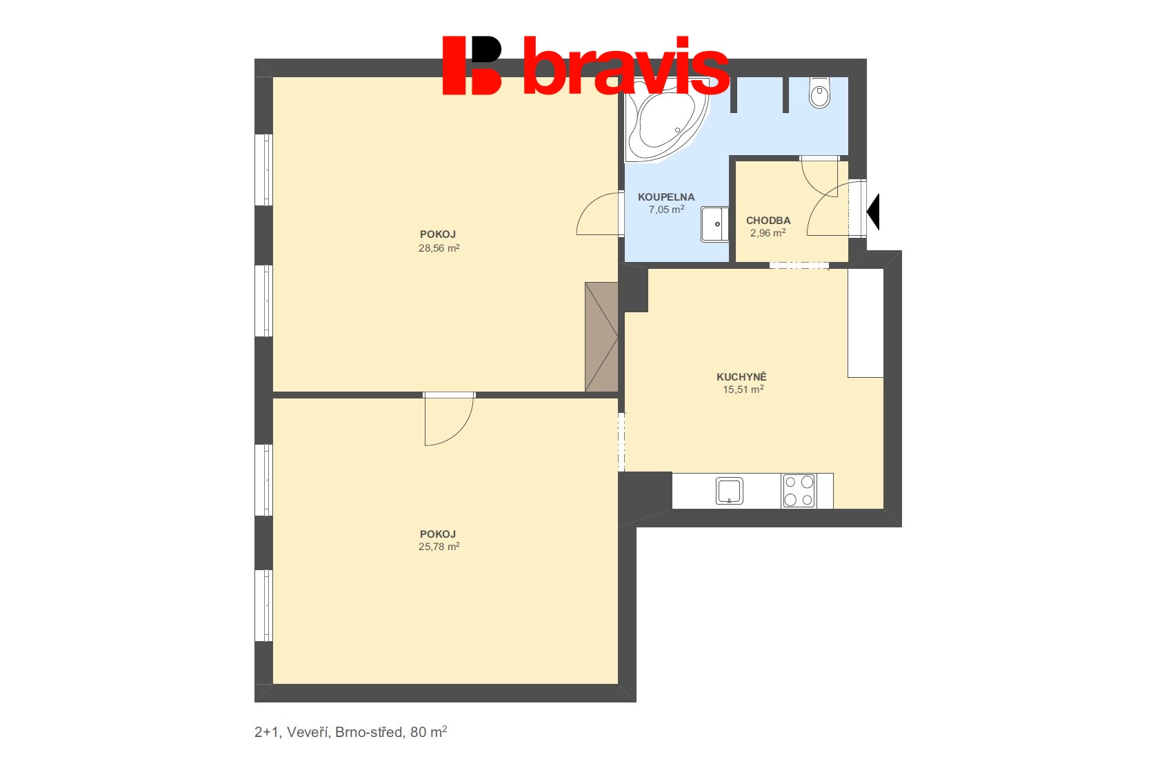 | Dispozice/podlahová plocha: | 2+1/80 m² |