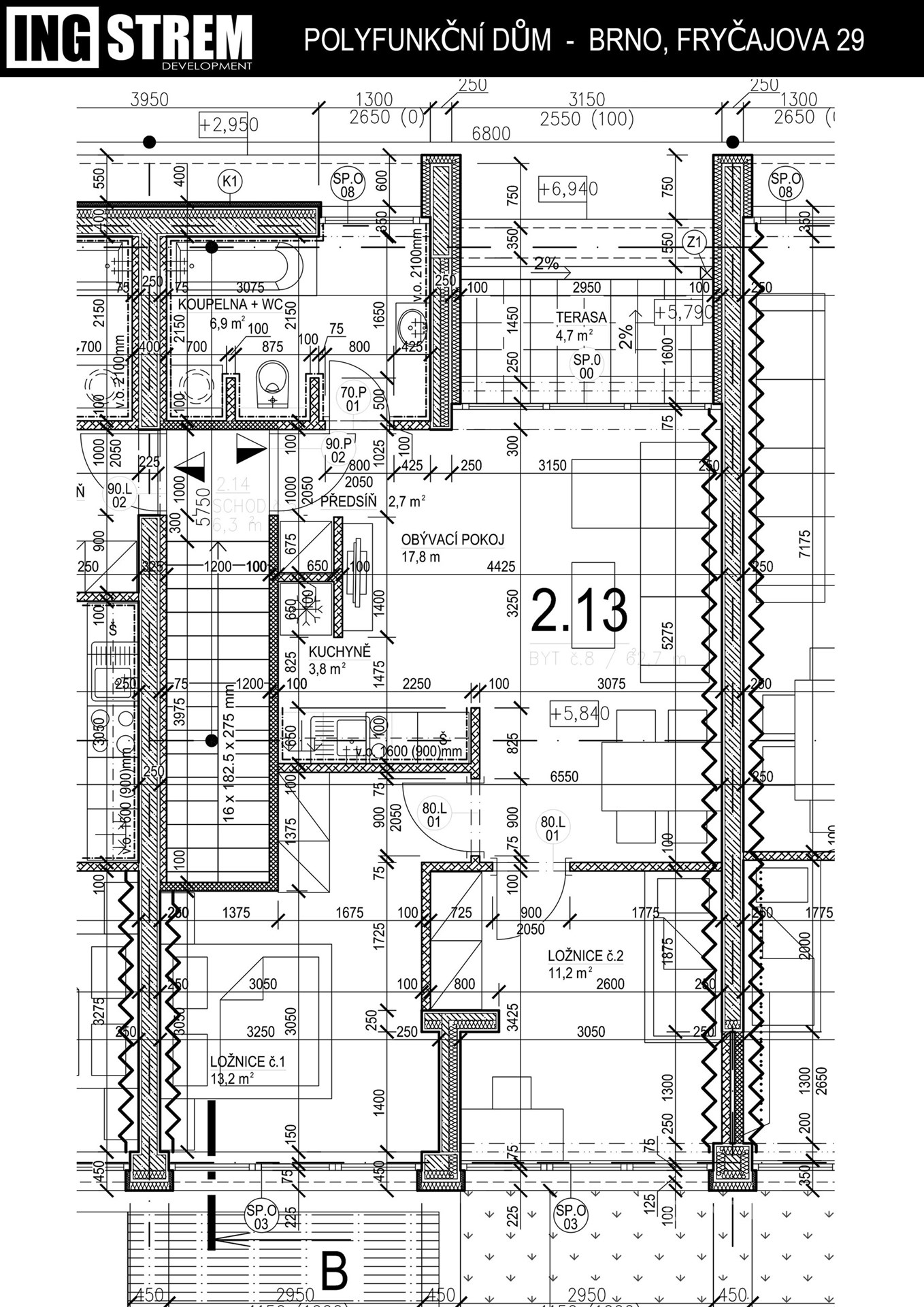 Nabízíme vám krásný byt 3+kk s terasou v polyfunkčním domě s wellness a fitness na ulici Fryčajova 29 v Brně.