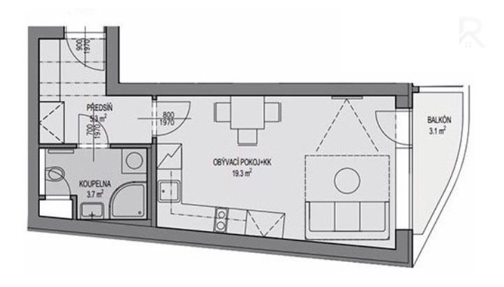 | Dispozice/podlahová plocha: | 1+kk/31 m² |