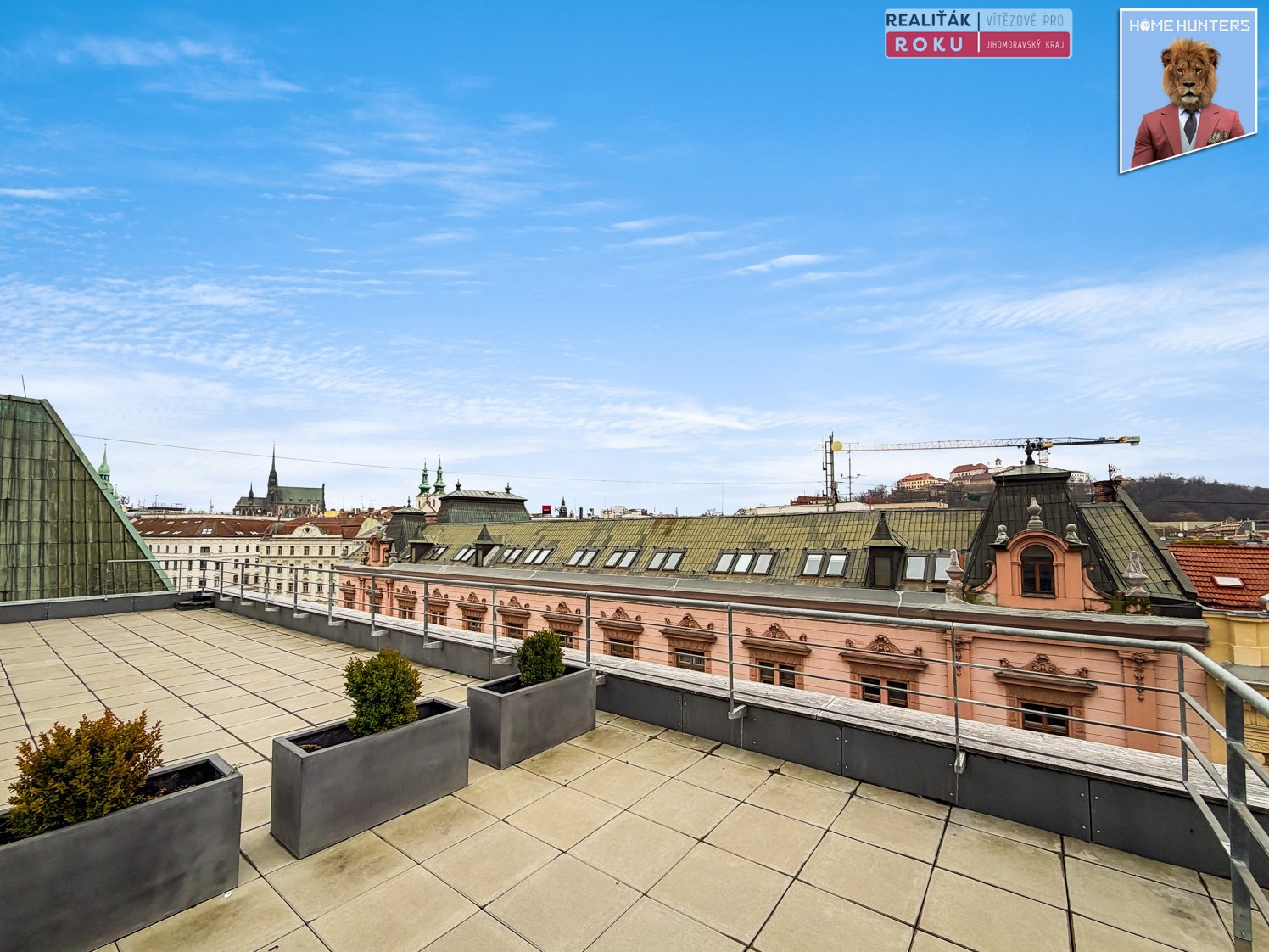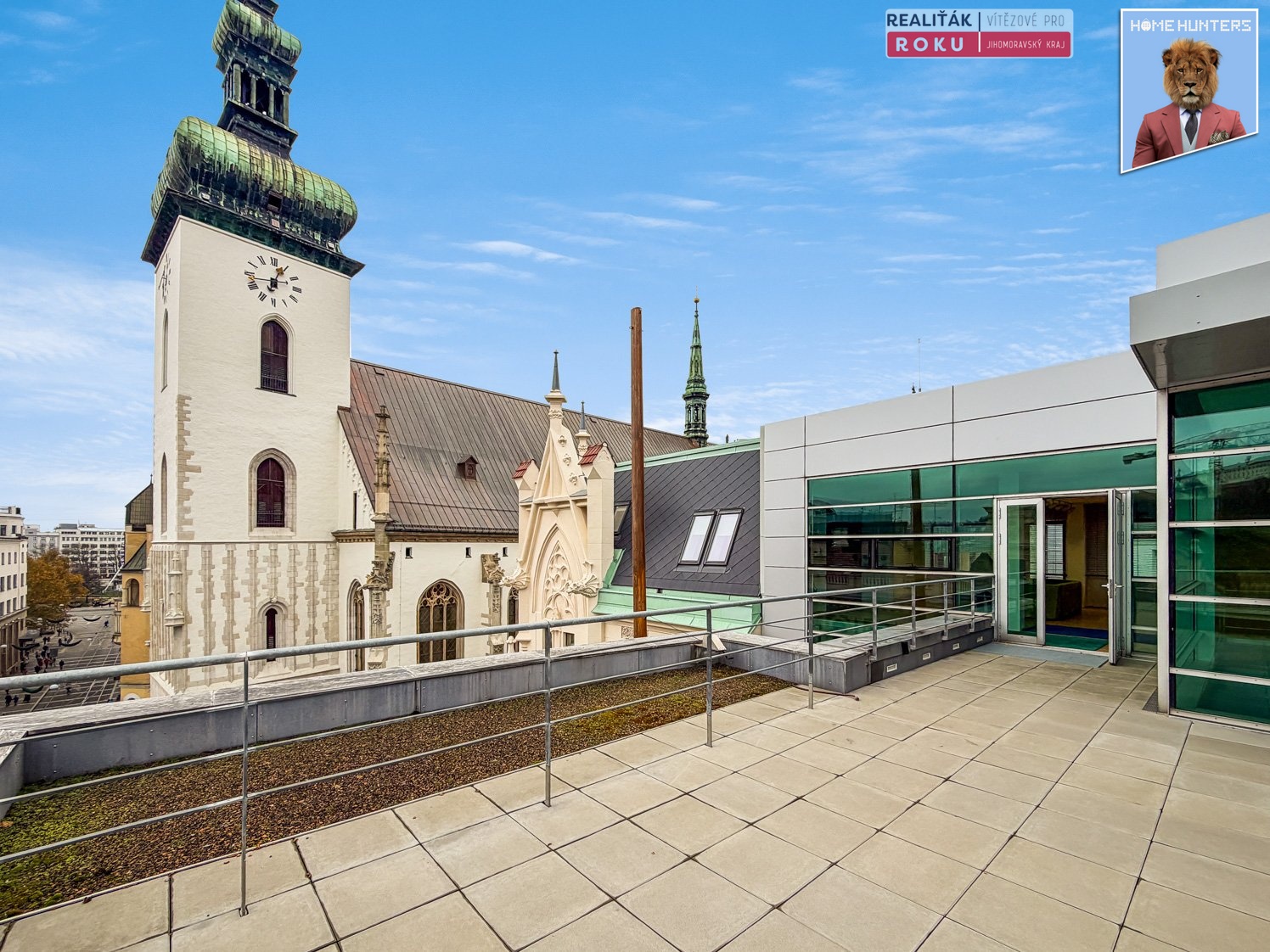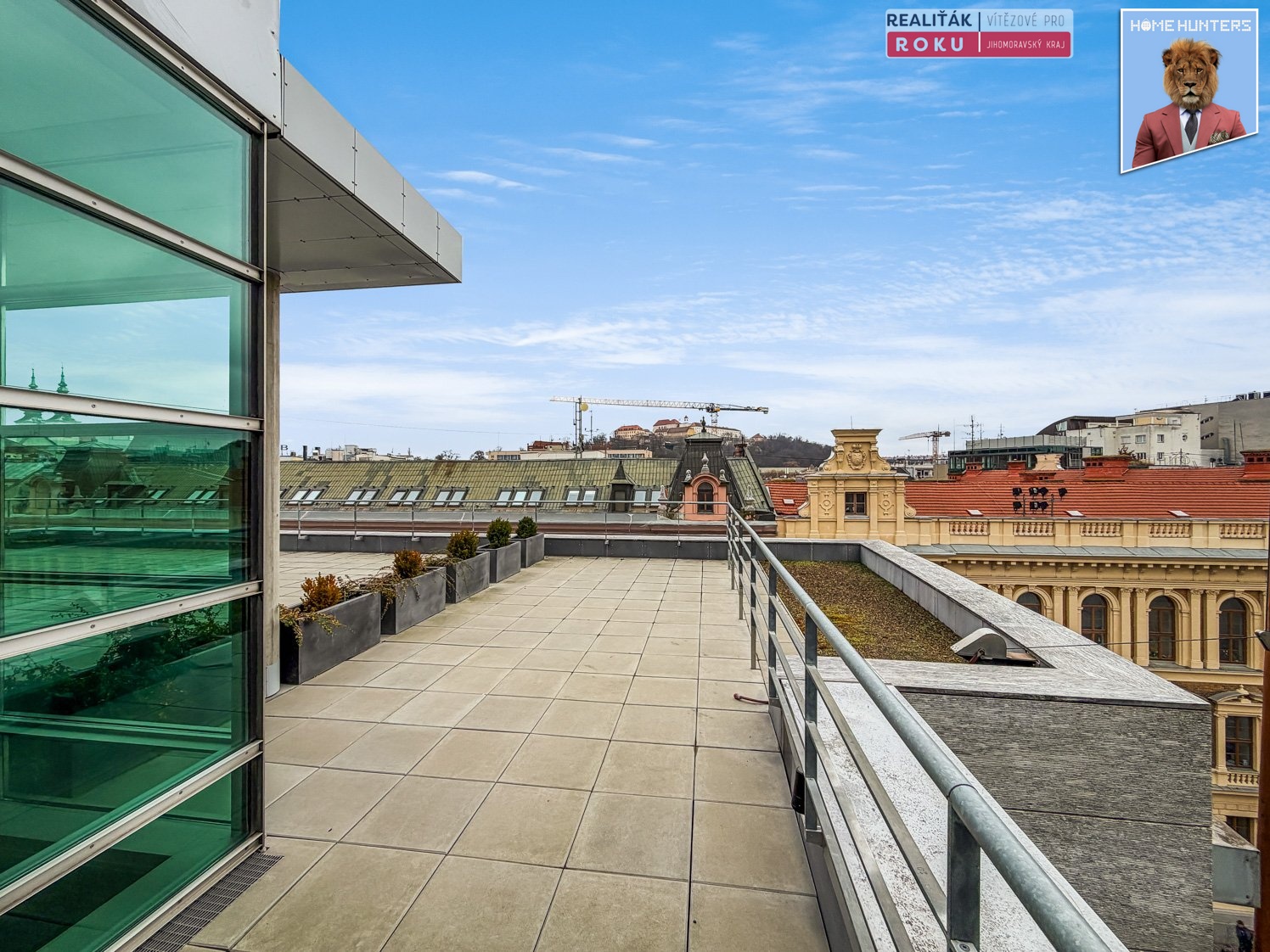Budova disponuje velkou terasou s výhledem na obě hlavní dominanty Brna - hrad Špilberk i katedrálu sv. Petra a Pavla. 1/3 terasy patří výhradně k tomuto kancelářskému prostoru a zbylé 2/3 jsou sdílené. Firemní večírky nebo obchodní setkání dostanou díky tomuto výhledu novou dimenzi. Stejné tak Vaši zaměstnanci ocení možnost odpočinku a čerstvého vzduchu s krásným výhledem na město. Unikátem je pak dále parkovací zakladač s kapacitou přes 30 míst, díky kterému si užijete komfortu parkování v centru, vč. vjezdu do pěší zóny. Než stihnete sejít dole ke garážím, už Vás bude čekat automobil nachystaný k výjezdu.