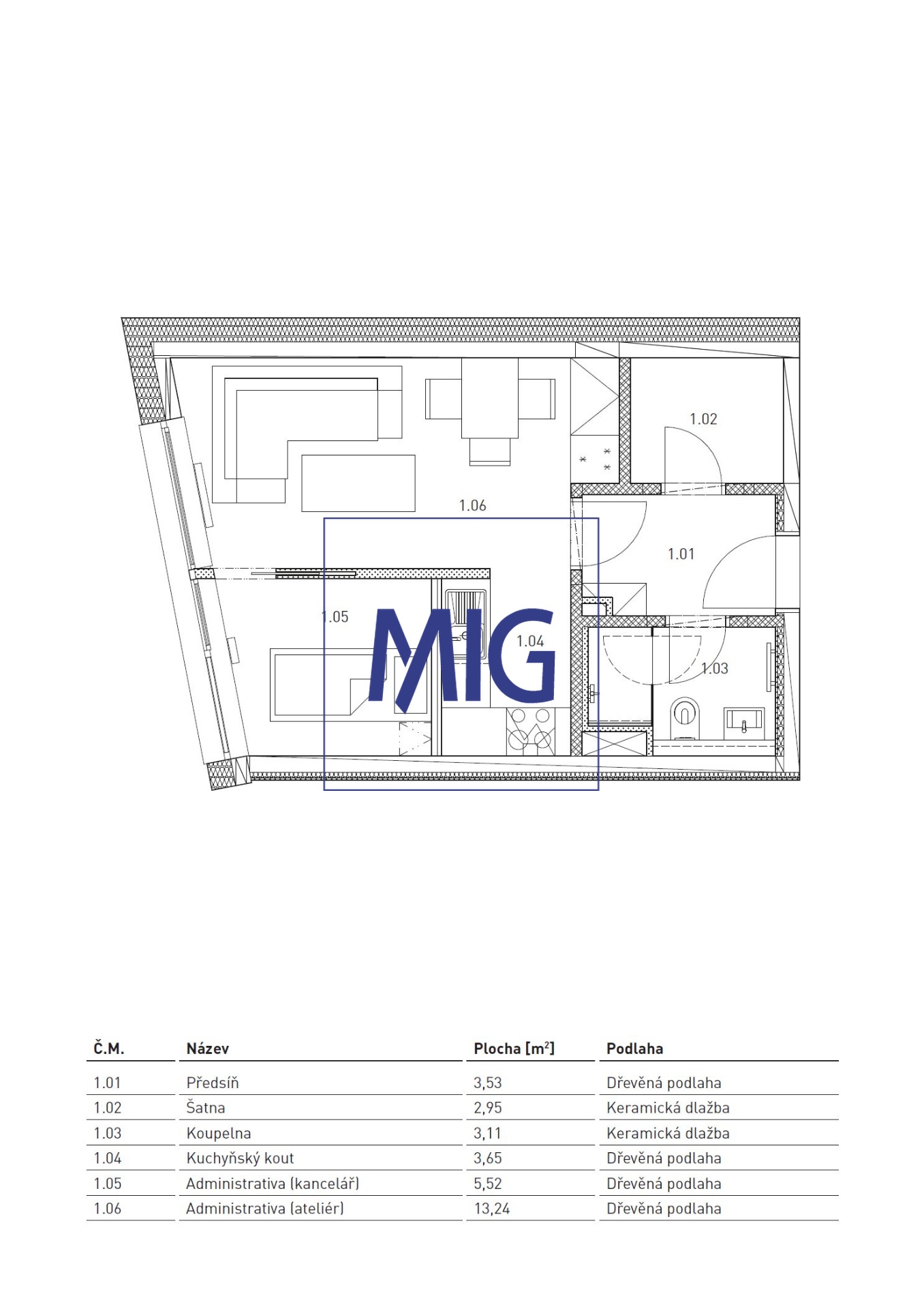 | Dispozice/podlahová plocha: | 2+kk/32 m² |