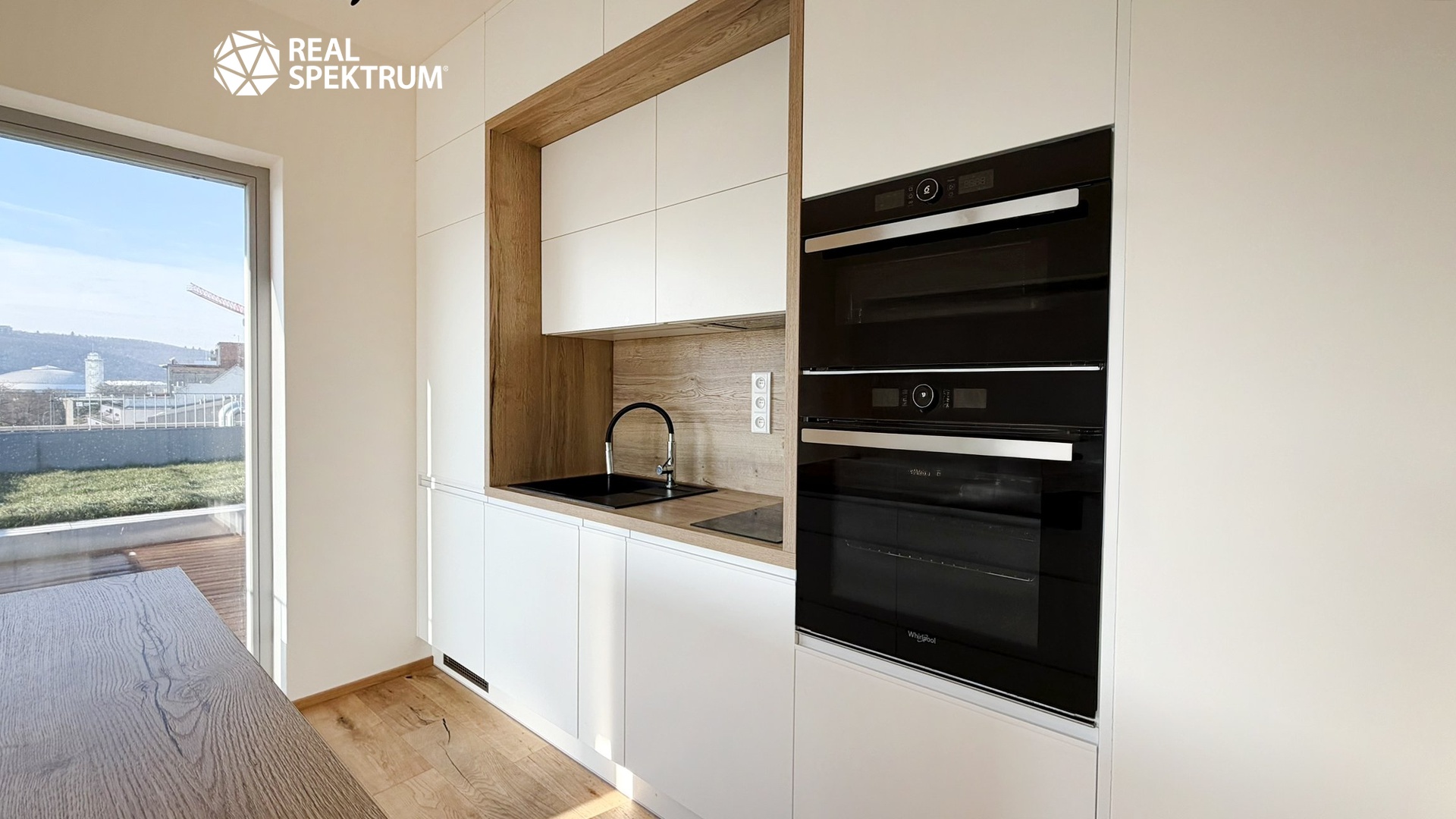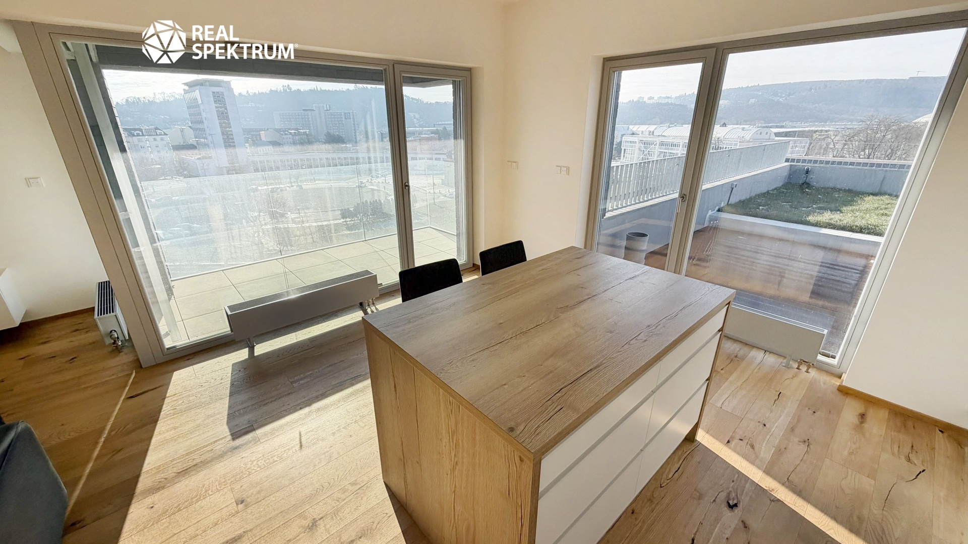 Pronájem moderního bytu 2+kk s lodžií, terasou, parkováním a výhledem -Staré Brno, Hlinky