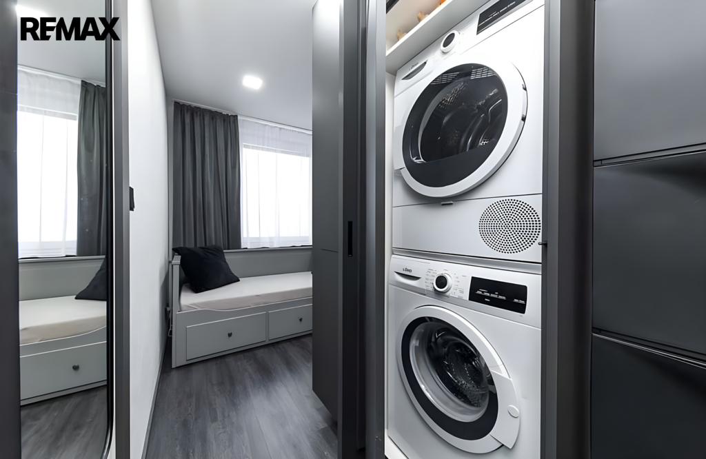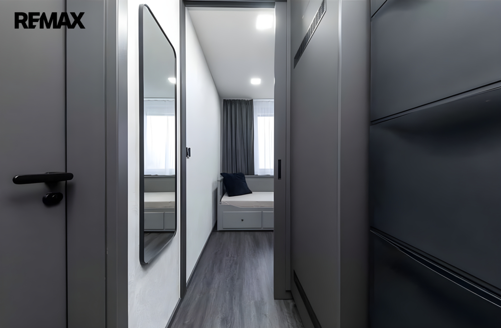 Byt prošel kompletní rekonstrukcí a pronajímá se včetně veškerého vybavení. K dispozici je postel, vestavěné skříně s dostatkem úložného prostoru, pračka i sušička, takže se můžete ihned nastěhovat bez dalších investic. Interiér působí velmi čistě a moderně, přičemž tmavé prvky dodávají prostoru styl a originalitu.
