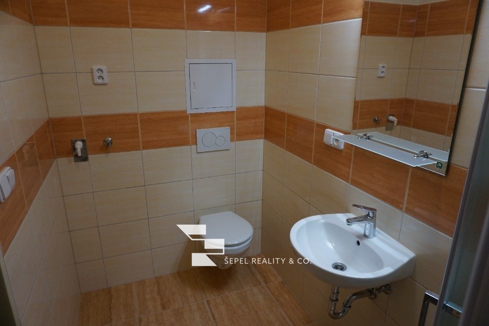 Koupelna a WC je dohromady, sprchový kout a přípojka na pračku.