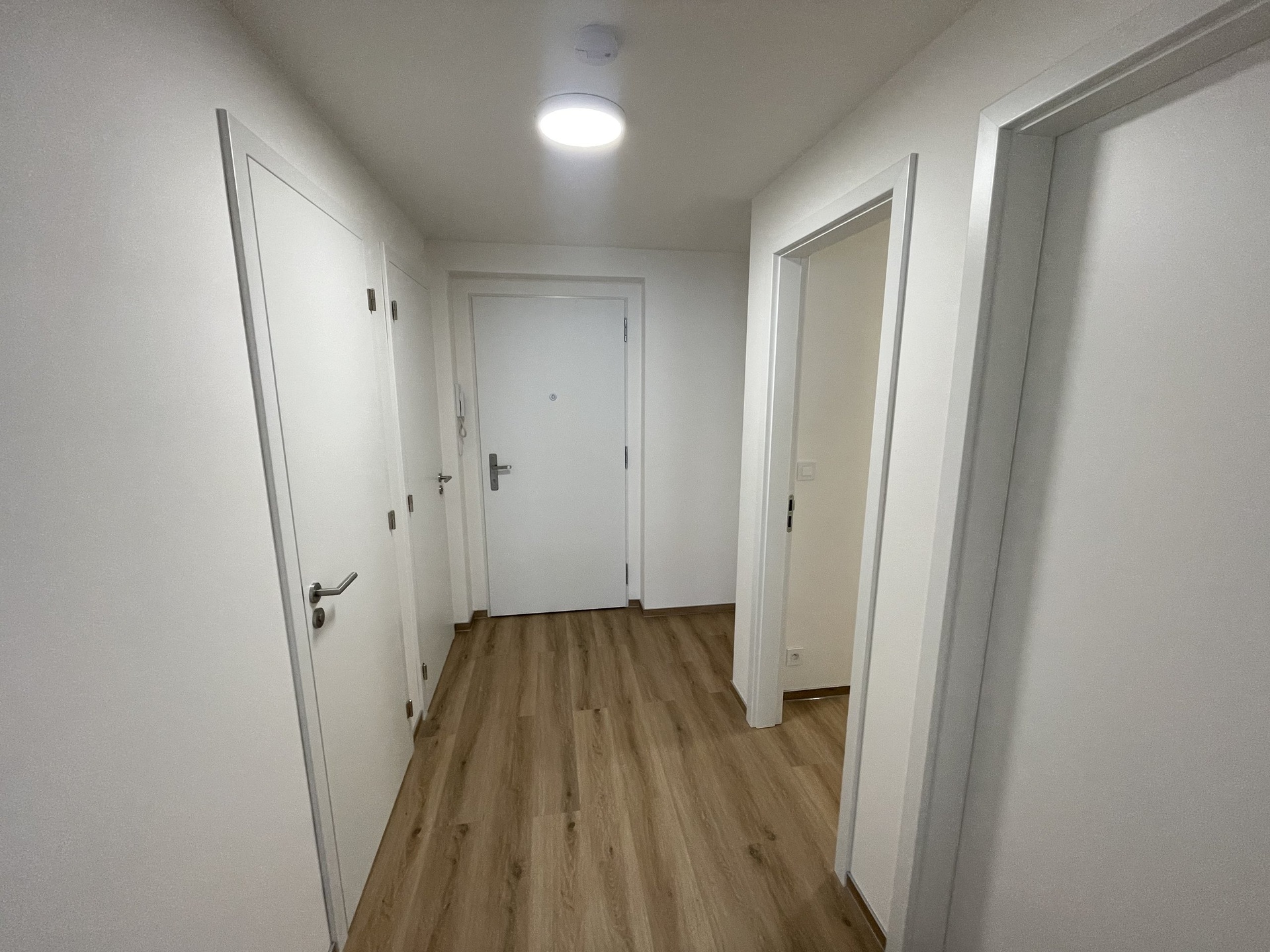 Vybavení: Kvalitní vinylová podlaha, nová rohová kuchyňská linka s vestavnými spotřebiči (indukční varná deska, horkovzdušná trouba, digestoř, myčka (60 cm), lednice s mrazákem. V koupelně je prostor pro pračku i sušičku. Pro maximální komfort a soukromí jsou okna vybavena venkovními žaluziemi.