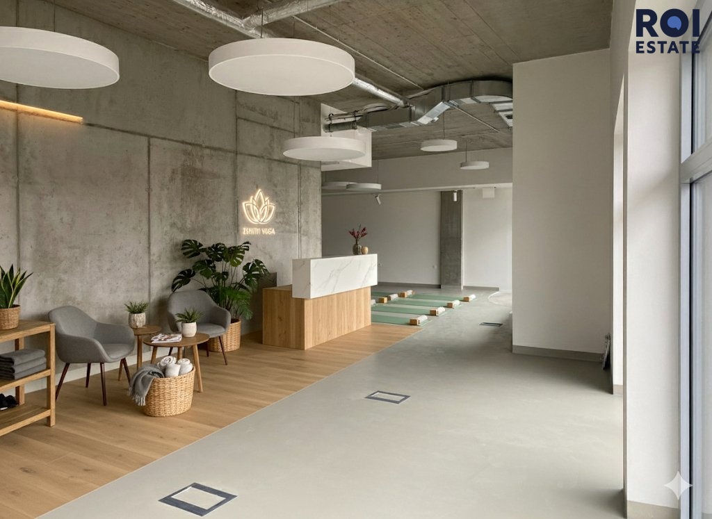 Prostor je navržen v industriálním stylu s betonovými podlahami a přiznanými stropními rozvody. Vstup je situován přímo z ulice Gajdošova, což zajišťuje maximální viditelnost a snadný přístup pro zákazníky. V zadní části je k dispozici sociální zařízení. Elektroinstalace a zásuvky jsou připraveny, takže prostor lze ihned přizpůsobit konkrétním potřebám. Díky své variabilitě se hodí pro obchod, showroom, výdejní místo, lékárnu, ateliér nebo moderní kanceláře, lékařské i zubní ordinace, jógová i jiná studia. Tím že jsou zde dva vchody se naskýtá velká řada možností využití. Lze také úplně oddělit část, která ma 145 mě a část o velikosti 29 m2. Dispozice, kterou prostory mají, je vhodná také pro provozy, kde je potřeba oddělený zadní vchod, třeba pro zásobování.