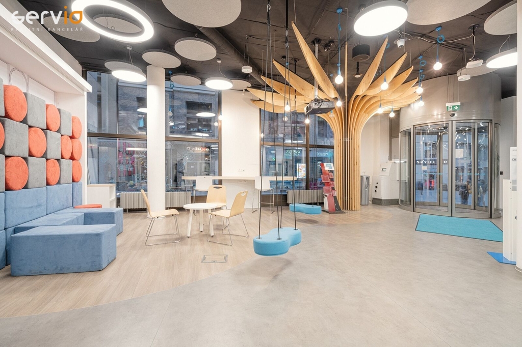 Vybavení: Sociální zařízení pro zaměstnance a pro klienty, přípojka internetu, kabelové rozvody. Jinak nezařízeno.