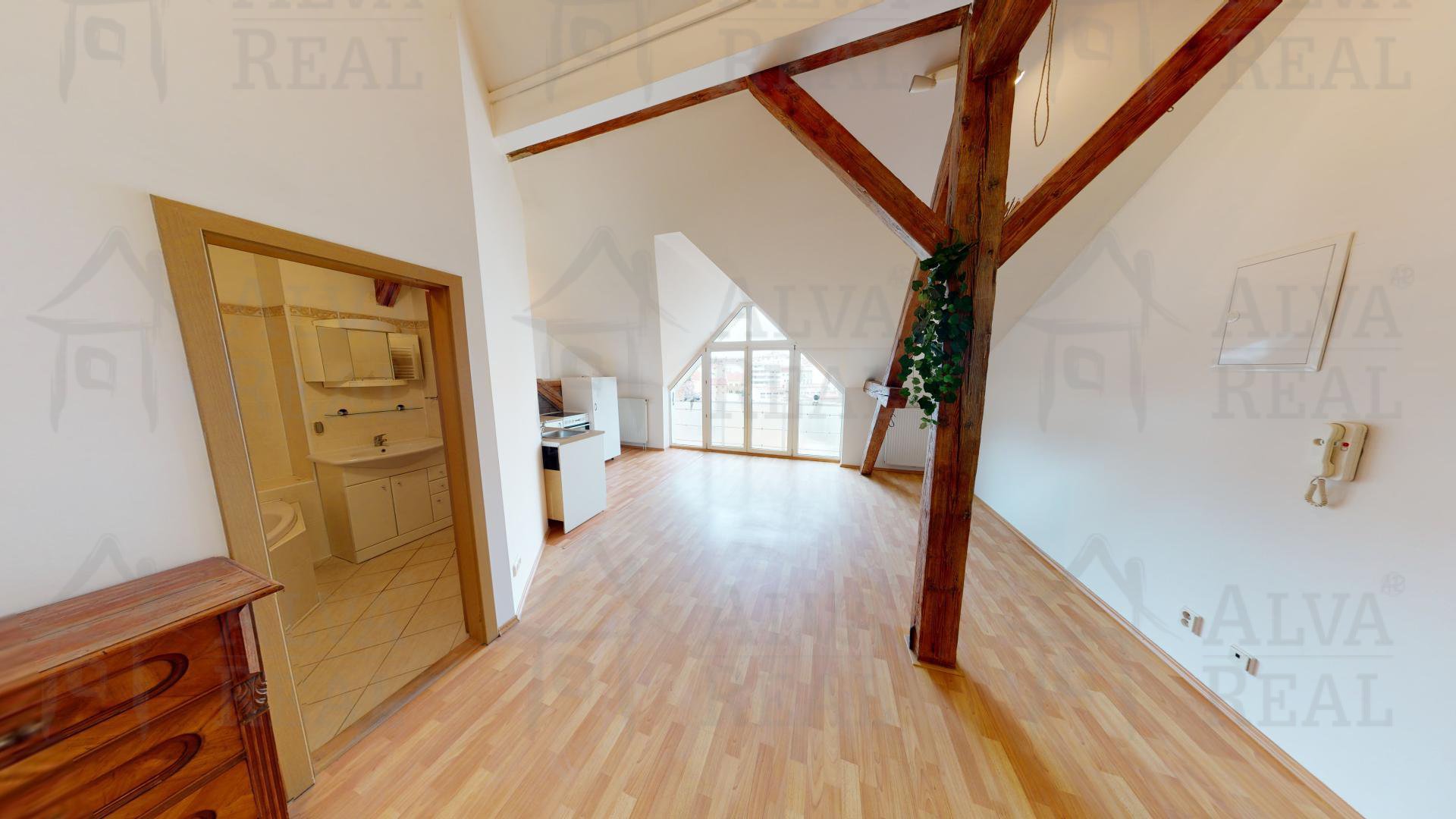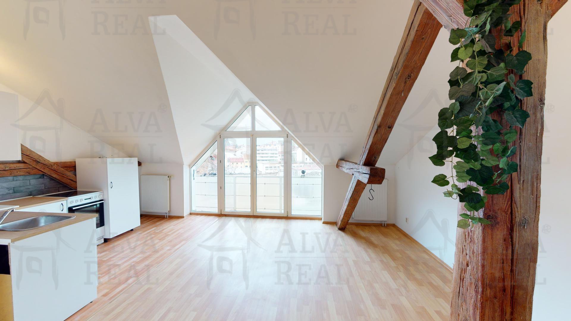 Pronájem podkrovního bytu 3+kk 90 m², ul. Štěpánská, Brno - střed s balkonem a výhledem na Petrov a