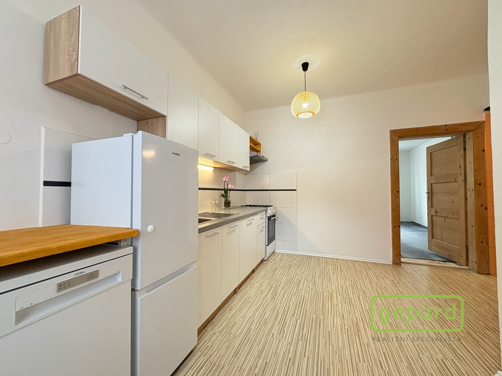 Kuchyňská linka je vybavena zcela novou lednicí s mrazákem a myčkou nádobí, plynovým sporákem s elektrickou troubou (vše značky Mora). Dále je zde příprava pro připojení pračky, která není součástí vybavení.
