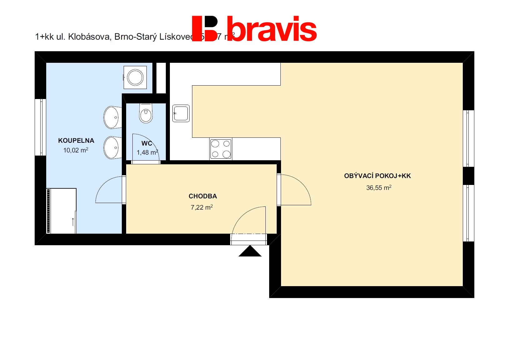 | Dispozice/podlahová plocha: | 1+kk/55 m² |