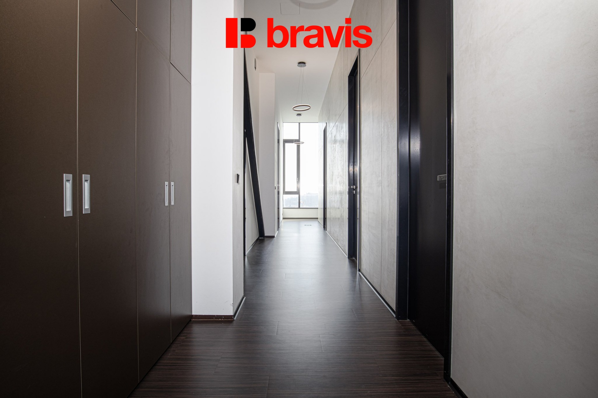 Nabízíme k pronájmu 280 m² v 18. patře novostavby na Veveří, které lze díky chytré dispozici využít jako kombinaci velkorysého bydlení a reprezentativního sídla firmy.
