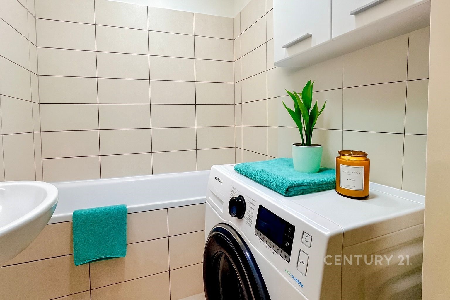 V koupelně je vana, koupelnový nábytek a pračka. Vedle koupelny samostatná toaleta. K bytu patří také sklep.
