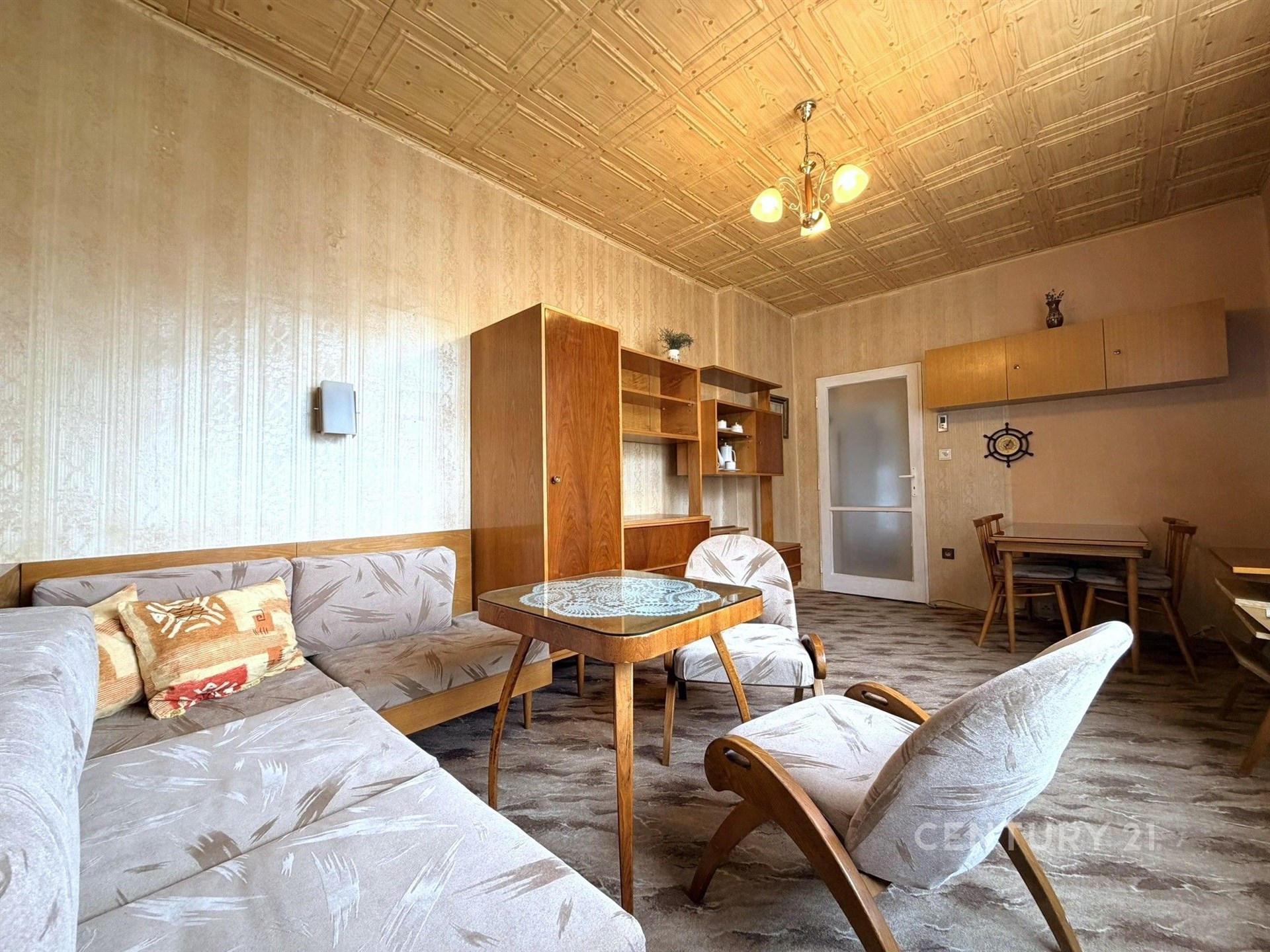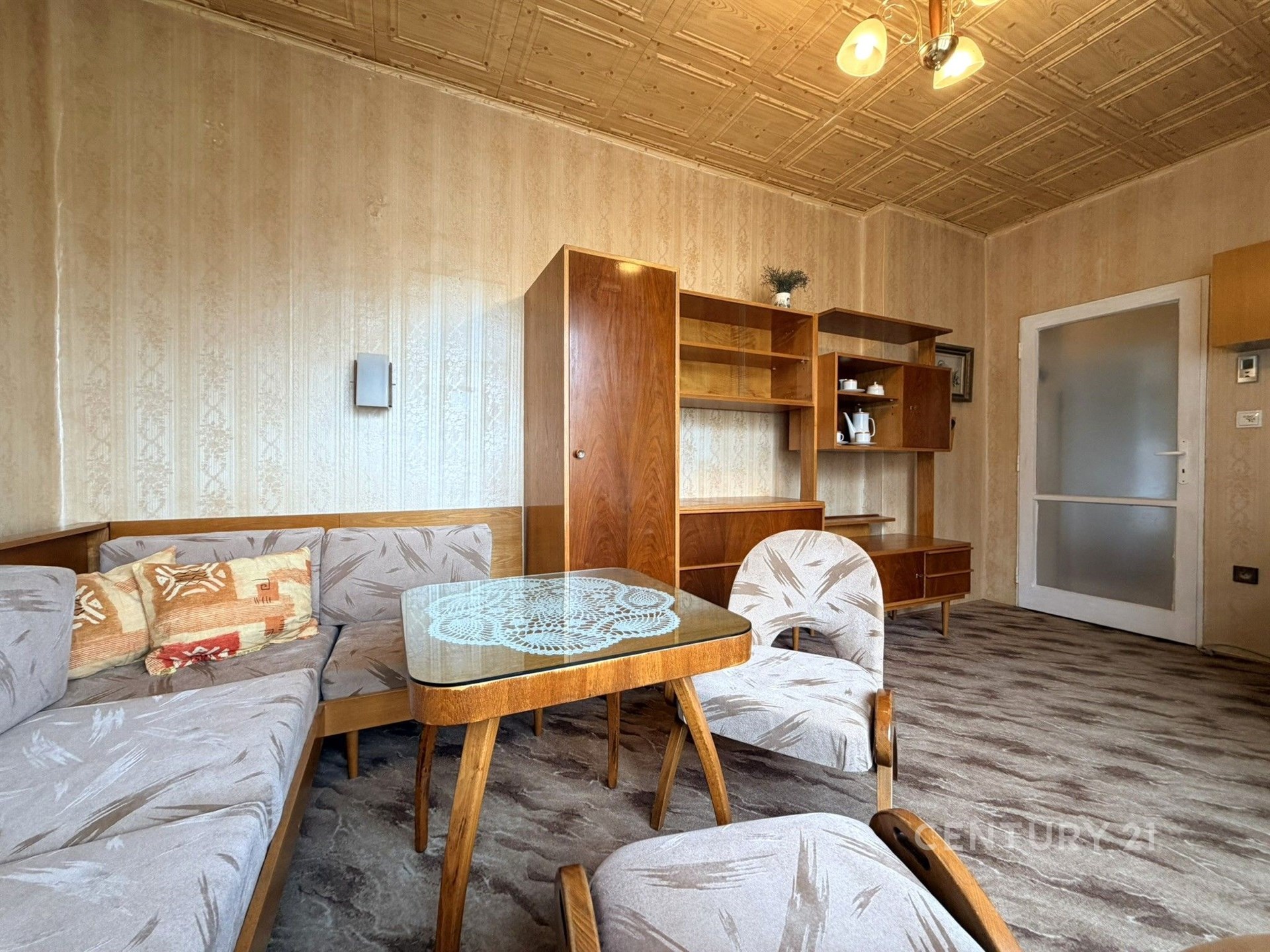 Dispozice bytu je řešena ze dvou neprůchozích pokojů, což je ideální řešení pro spolubydlení, rodinu nebo menší pokoj jako pracovna. Obývací pokoj je průchozí, prostorný a nabízí příjemný retro styl zařízení. V předsíni se nachází vestavěné skříně, oddělená toaleta a koupelna s vanou. Podlahu tvoří převážně linoleum a parkety. Okna jsou plastová.