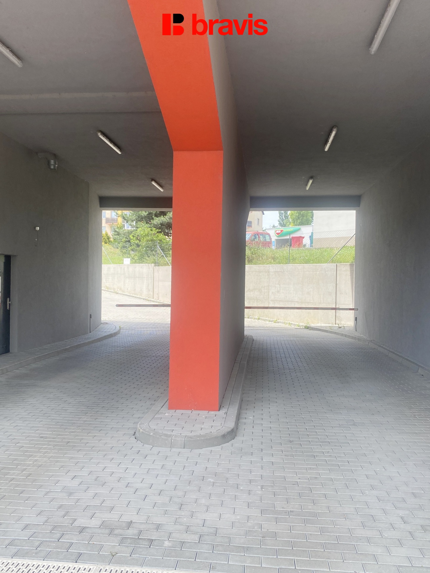 Nachází se ve vnitrobloku za závorou.