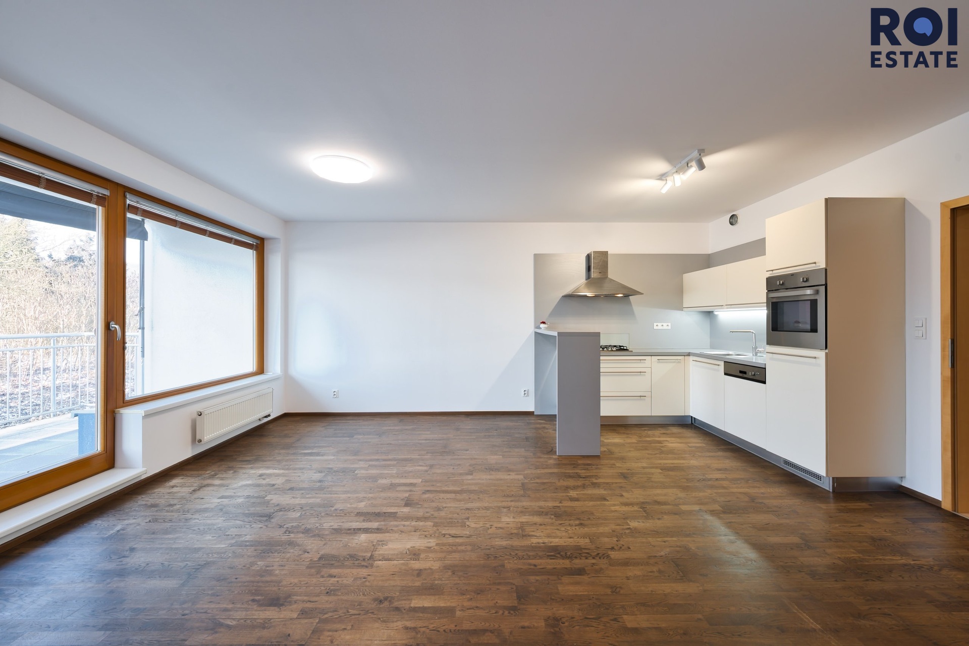 Dominantou bytu je velký obývací pokoj s kuchyňským koutem. Otevřený, světlý prostor, který dává volnost v uspořádání nábytku. Kuchyňská linka je vybavena myčkou, plynovou varnou deskou, elektrickou troubou a lednicí, takže máte funkční základ a zbytek už je jen o stylu. Stačí jídelní stůl, pár židlí, pohovka a byt začne žít.