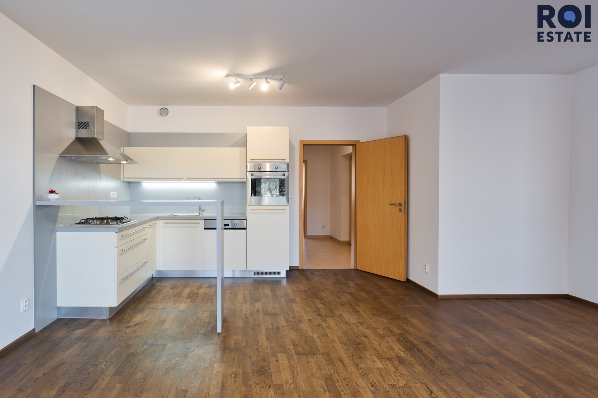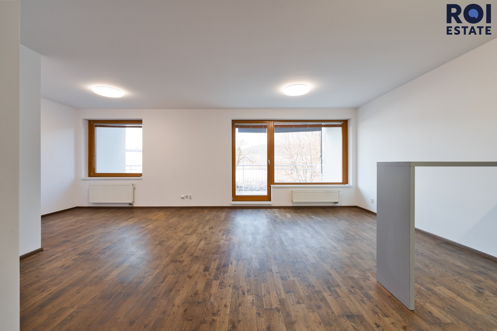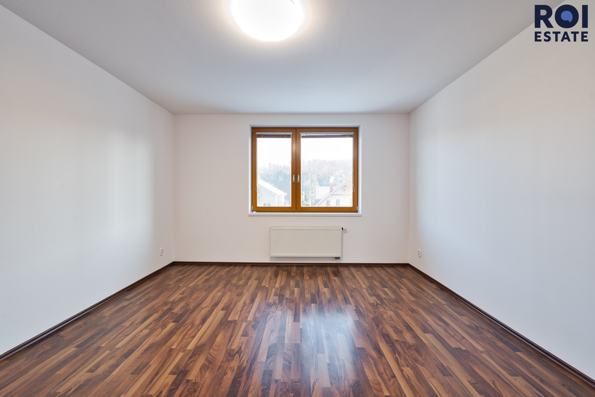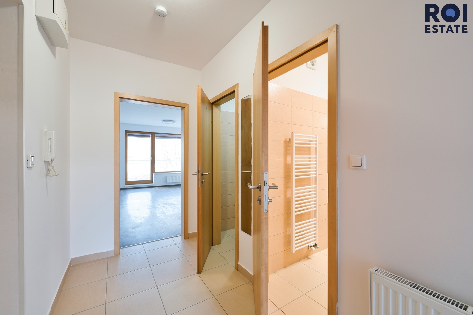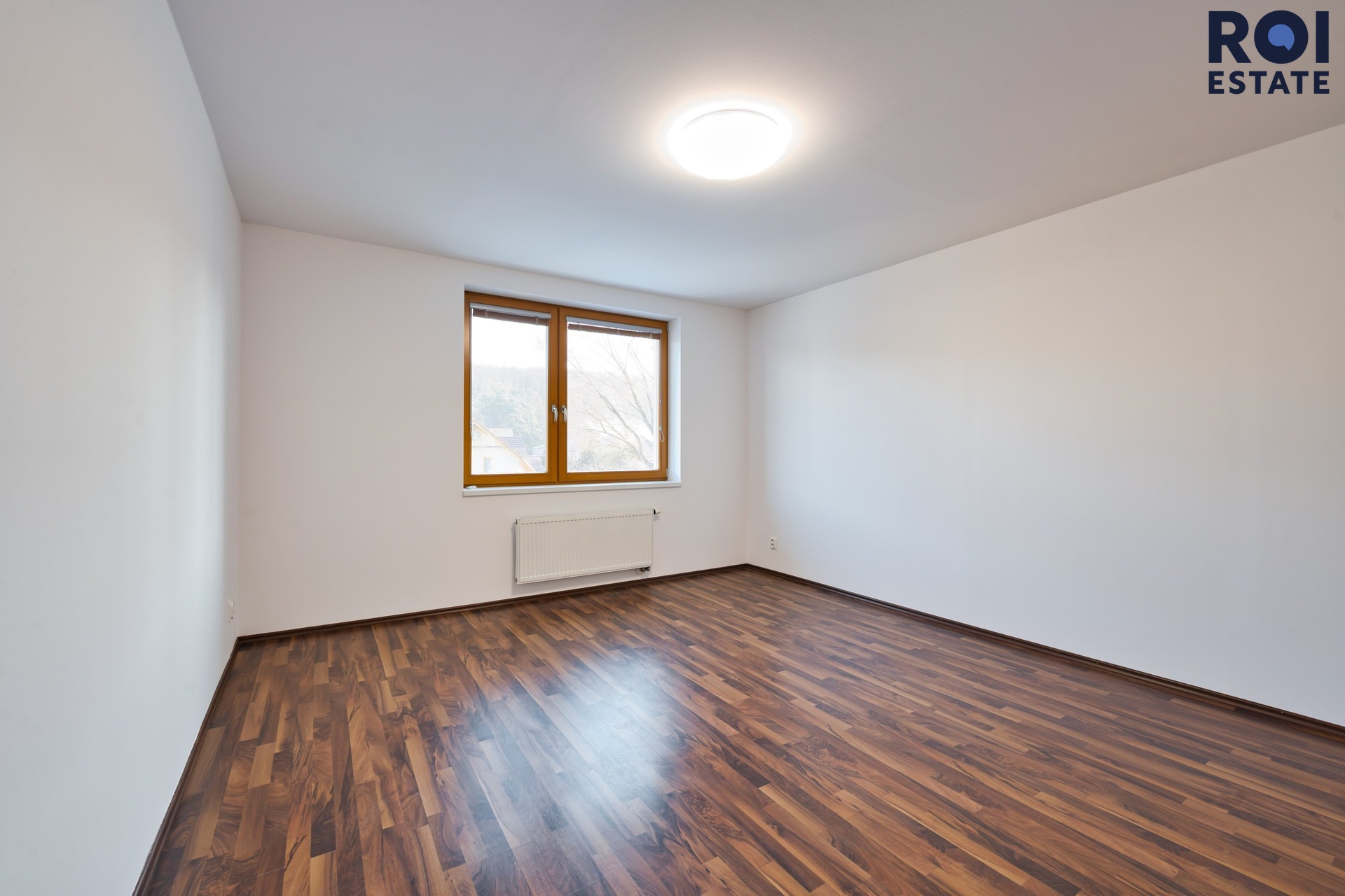 Z chodby se dostanete do ložnice, která působí klidně a odděleně od hlavního obytného prostoru. Díky tomu, že je byt nezařízený, si ji můžete snadno přizpůsobit od minimalistického spaní až po útulnou ložnici s čalouněnou postelí, závěsy a teplým osvětlením.