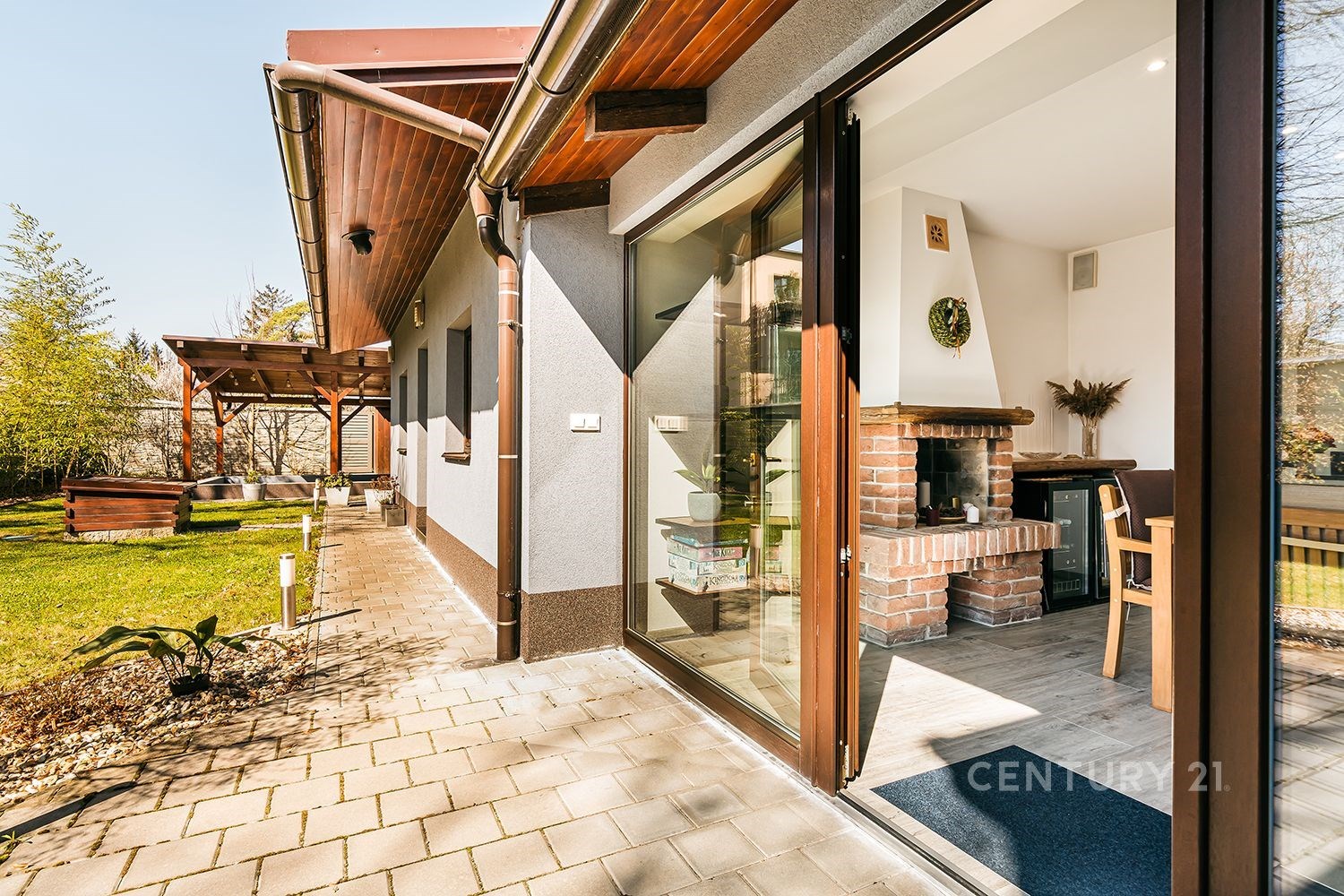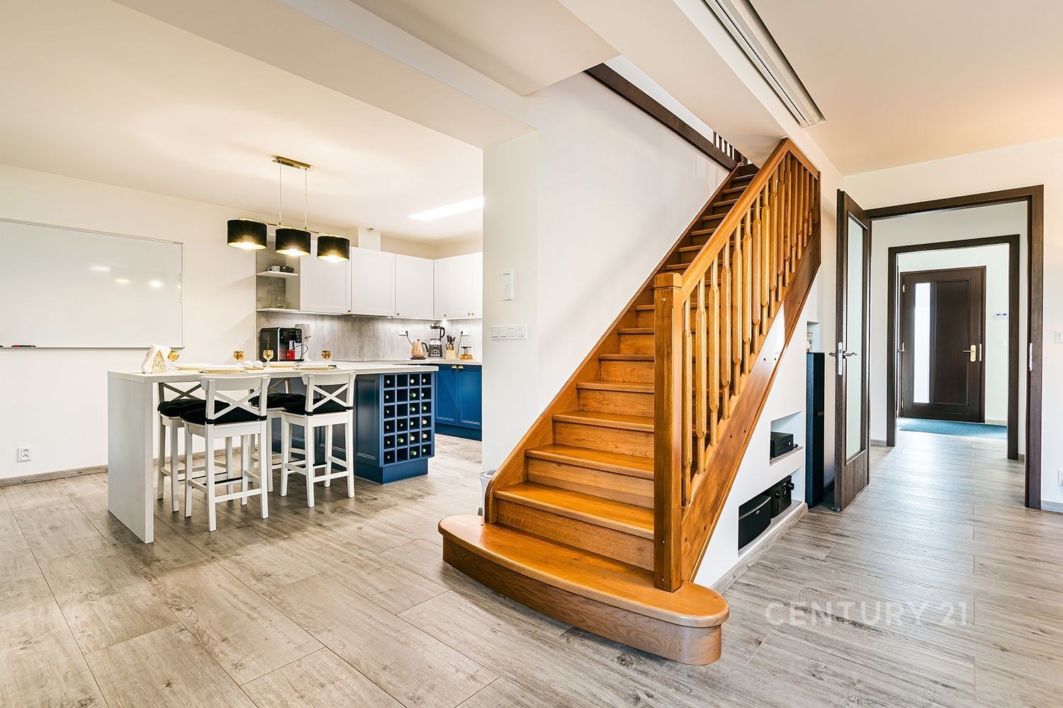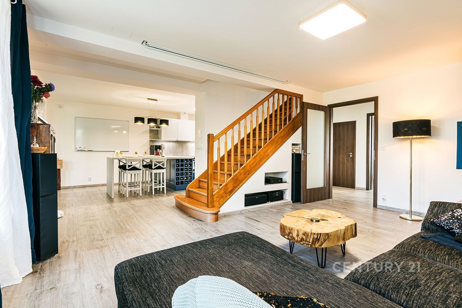 Tato nemovitost zaujme na první pohled: jak svým promyšleným dispozičním řešením, tak nadstandardní kvalitou použitých materiálů: okna s izolačními trojskly, kompletní zateplovací systém, schodiště z masivu, zabezpečovací systém, nábytek na míru, vestavěné promítací plátno atd.