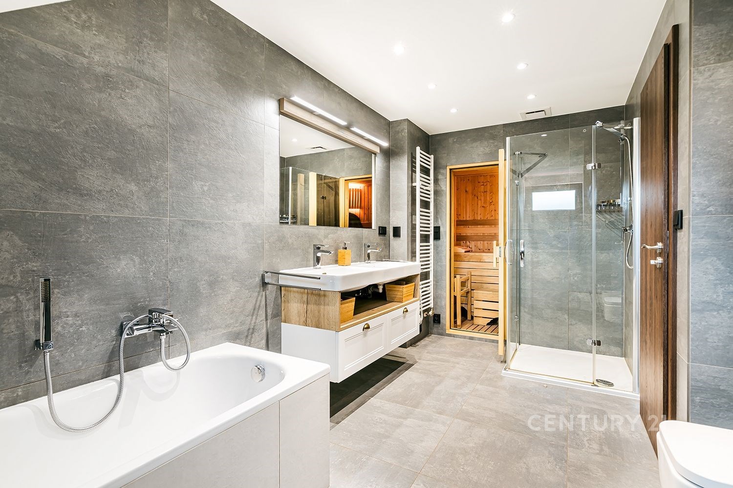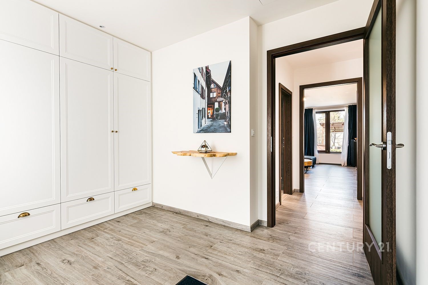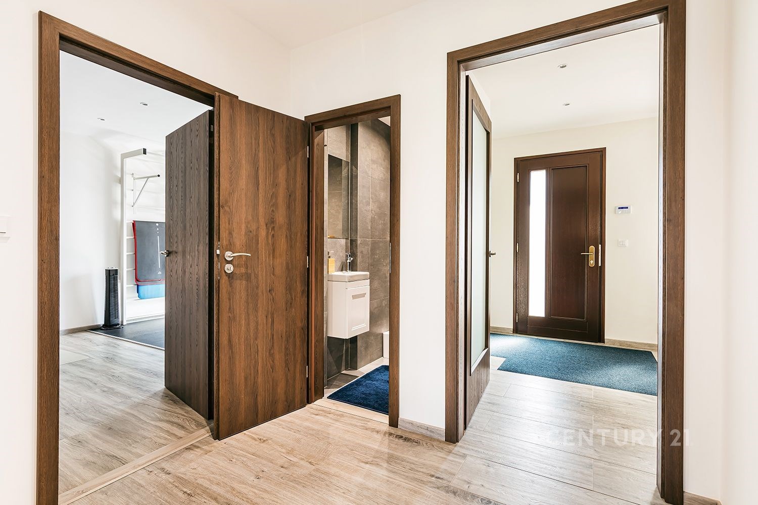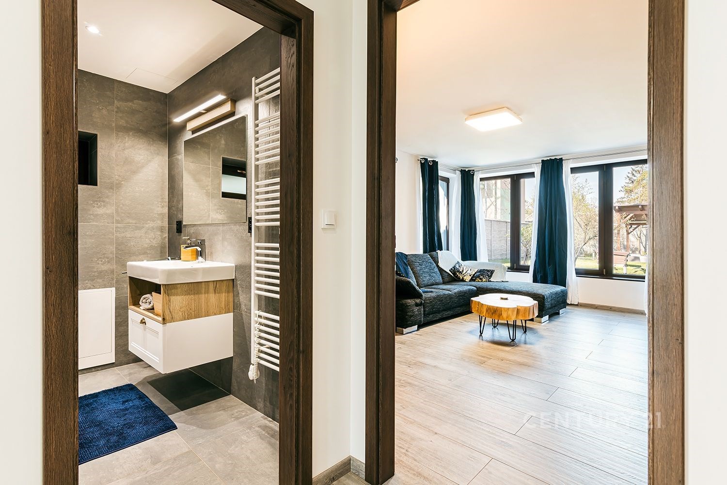 Tato nemovitost zaujme na první pohled: jak svým promyšleným dispozičním řešením, tak nadstandardní kvalitou použitých materiálů: okna s izolačními trojskly, kompletní zateplovací systém, schodiště z masivu, zabezpečovací systém, nábytek na míru, vestavěné promítací plátno atd.