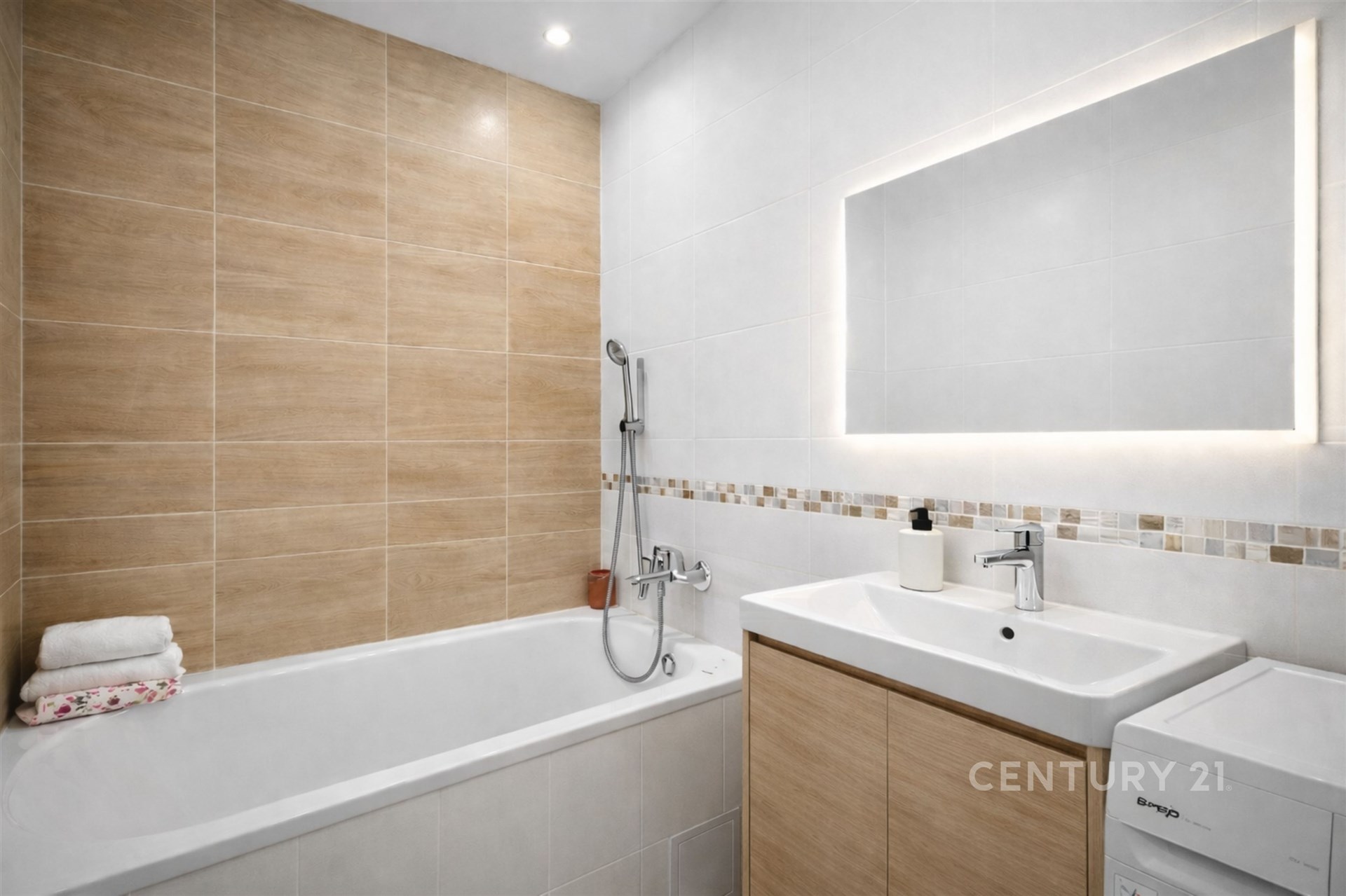 Koupelna s vanou i samostatné WC jsou plně funkční a udržované, zároveň ale nabízejí prostor k případné modernizaci dle vkusu nového majitele.