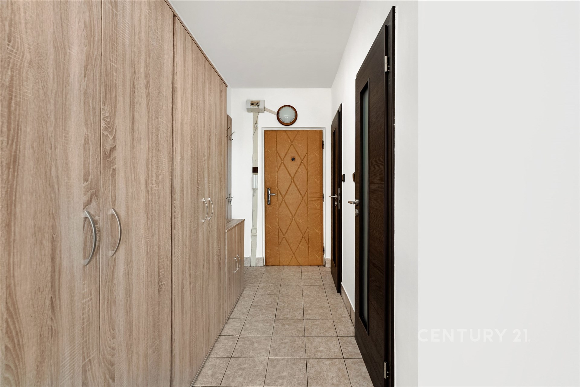 V obývacím pokoji zůstává kvalitní obývací stěna, v chodbě je vestavěný nábytek se skříněmi, který nabízí dostatek úložného prostoru. Druhý pokoj je samostatný a je vhodný jako ložnice, dětský pokoj nebo pracovna.
