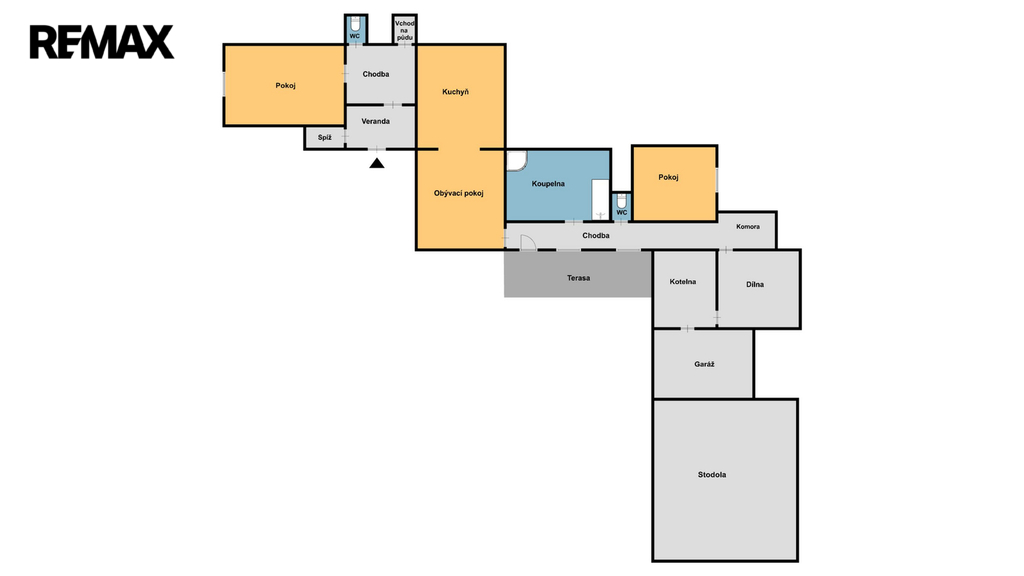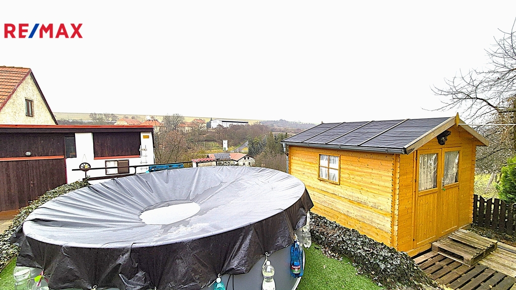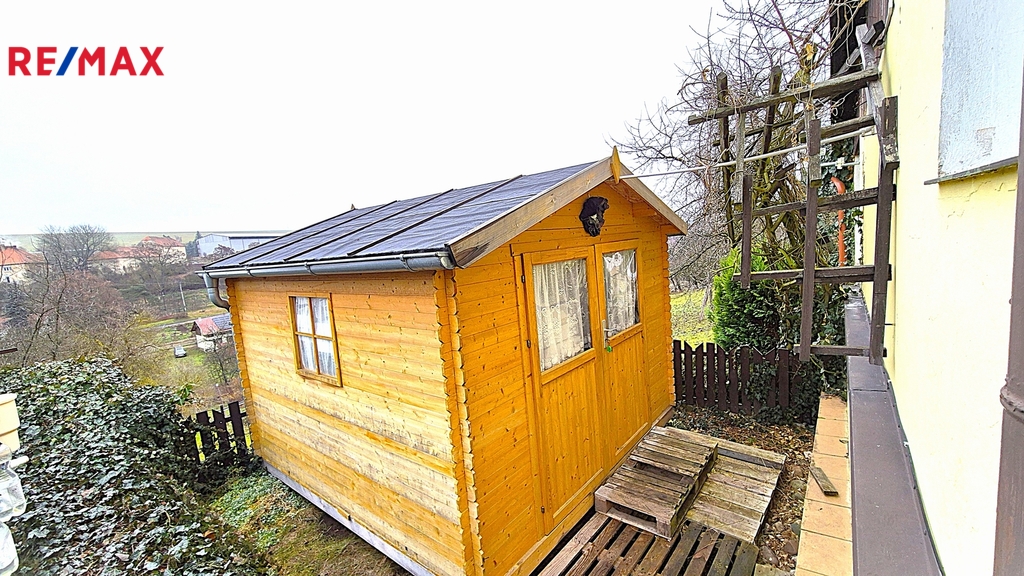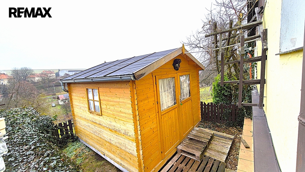 Na stavební parcele o výměře 595 m² se nachází hlavní rodinný dům o dispozici 3+1 a samostatný menší dům o dispozici 1+1 s obytnou plochou 36 m². Součástí zastavěné části je také garáž, dílna, kotelna a prostorná stodola, přičemž všechny tyto prostory jsou přístupné přímo z interiéru hlavního domu, což výrazně zvyšuje komfort užívání. Nemovitost je nepodsklepená, avšak nabízí nadstandardní množství úložných a technických prostor.