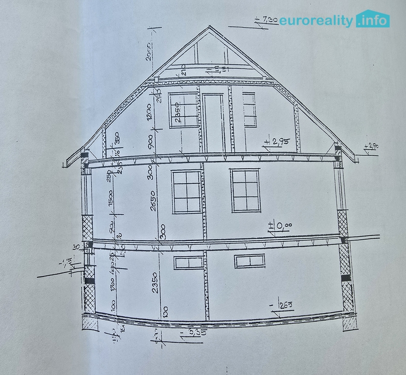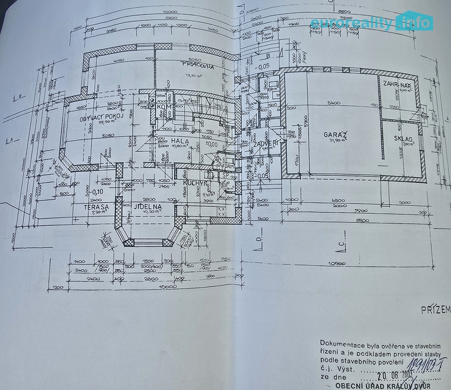 - Hrubá stavba domu – tři podlaží, tzn. suterén s třemi sklepy, přízemí s garáží 32 m2 a podkroví, celkem 302 m2, nabízí se kombinace bydlení s podnikáním. Dům je zděný z bloků Porothermu, garáž tvárnice Hebel. Střešní krytina Bramac. U domu je plánována velká terasa s bazénem.