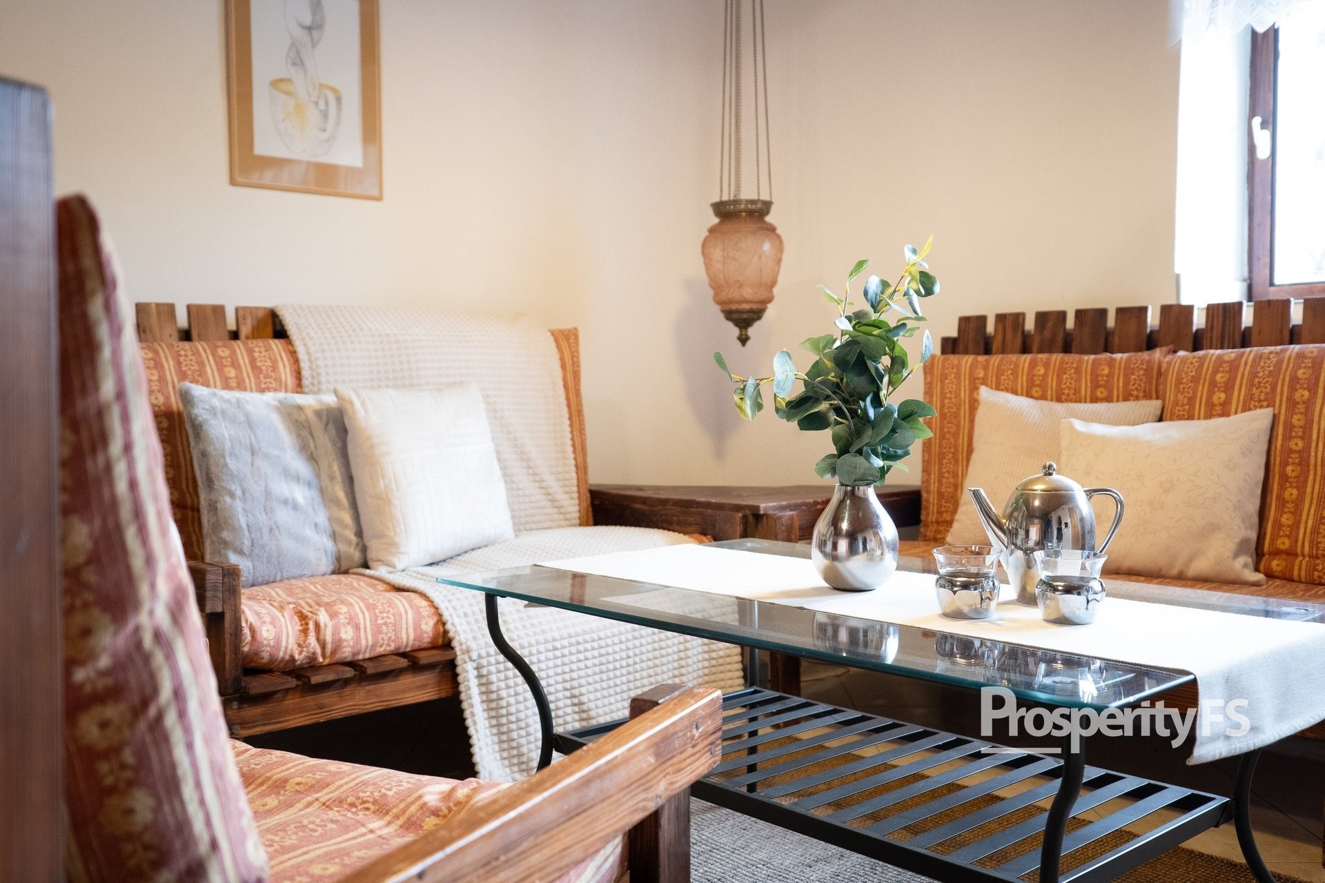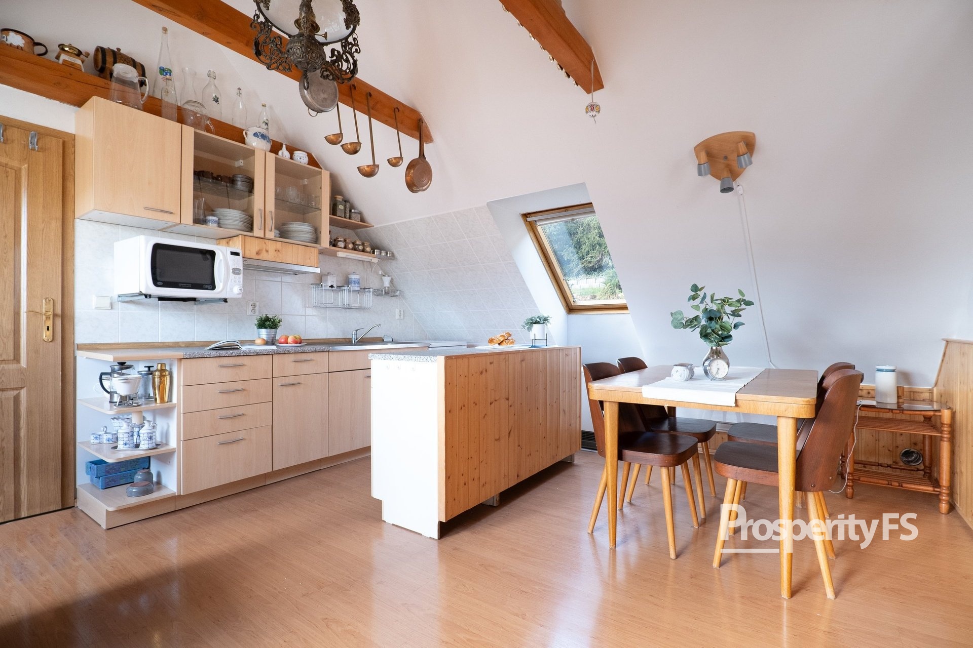 • Byt v 1.NP je ve starším, typicky venkovském stylu, s kouzelnou atmosférou a tradičním vybavením. Byt je přesto plně funkční a samostatný včetně plnohodnotné kuchyně, toalety a sprchového koutu.