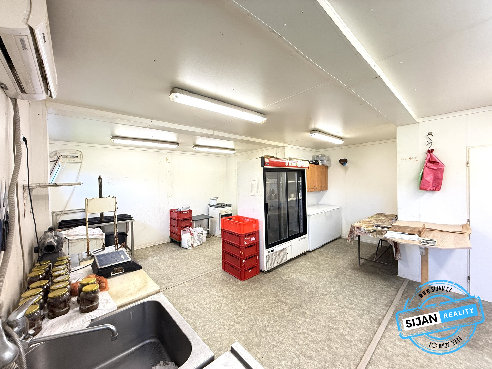 Objekt je tvořen sestavou 4 unimobuněk a dispozičně nabízí zádveří, hlavní výrobní prostor, kancelářské zázemí a kompletní sociální zařízení (sprcha, WC, šatna). Stav objektu je dobrý a umožňuje okamžité využití bez nutnosti větších investic.