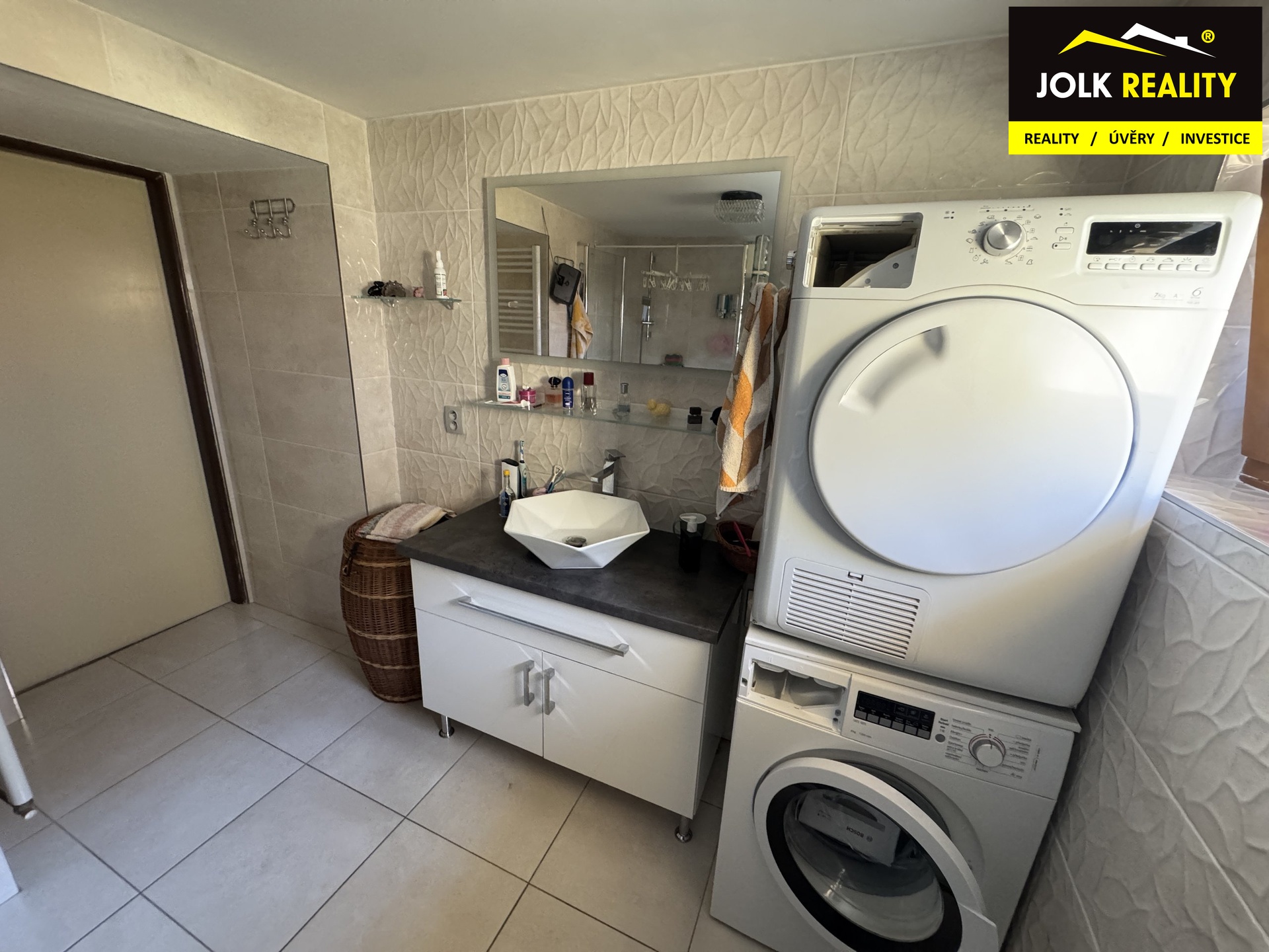 V přízemí se dále na pravé straně chodby nachází technická místnost. Na druhé straně chodby směrem od vstupu je obývací pokoj za kterým je prostorná kuchyně. Za kuchyní je pak přes zastřešený prostor vstup na zahradu, což oceníte zejména při posezení s rodinou nebo přáteli. Na konci chodby se nachází nově zrekonstruovaná koupelna s prostorným sprchovým koutem.