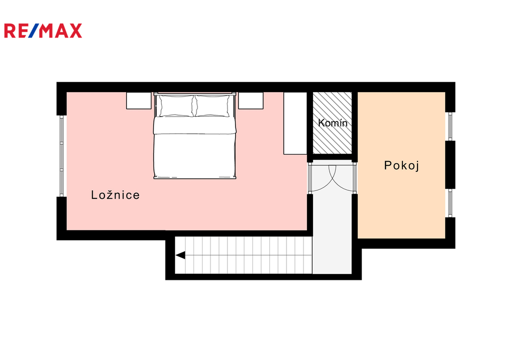 2. NP - koupelna s rohovou vanou a toaletou, obývací pokoj s krbovými kamny,