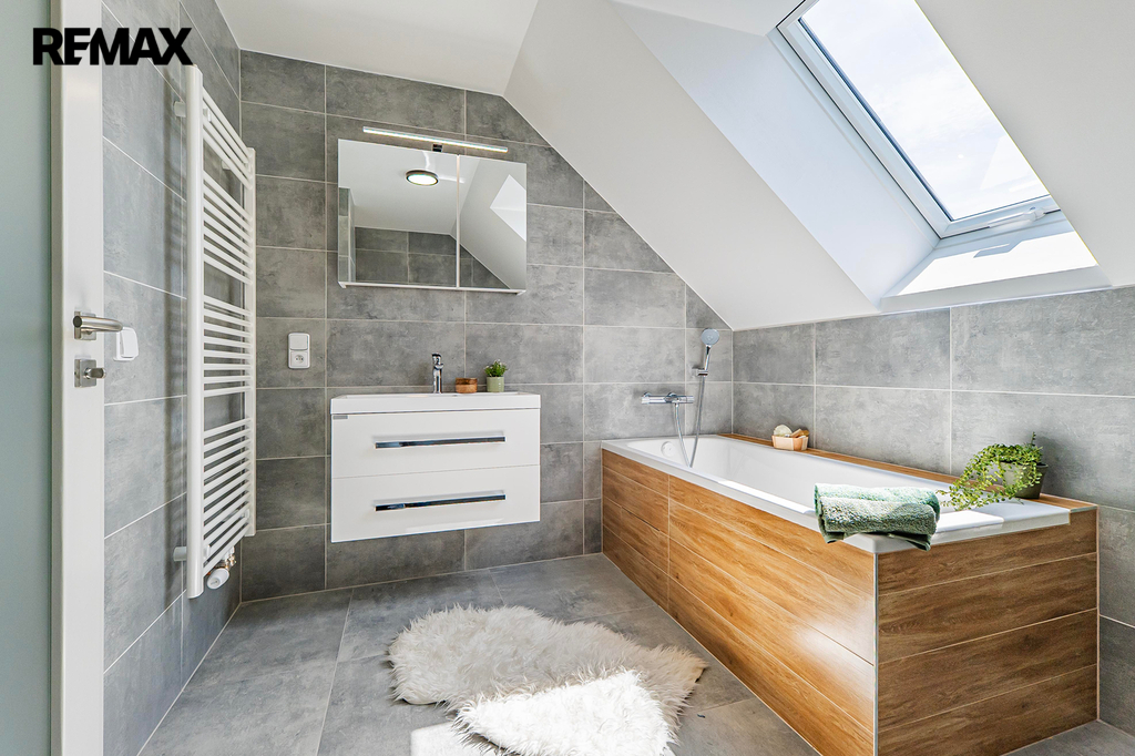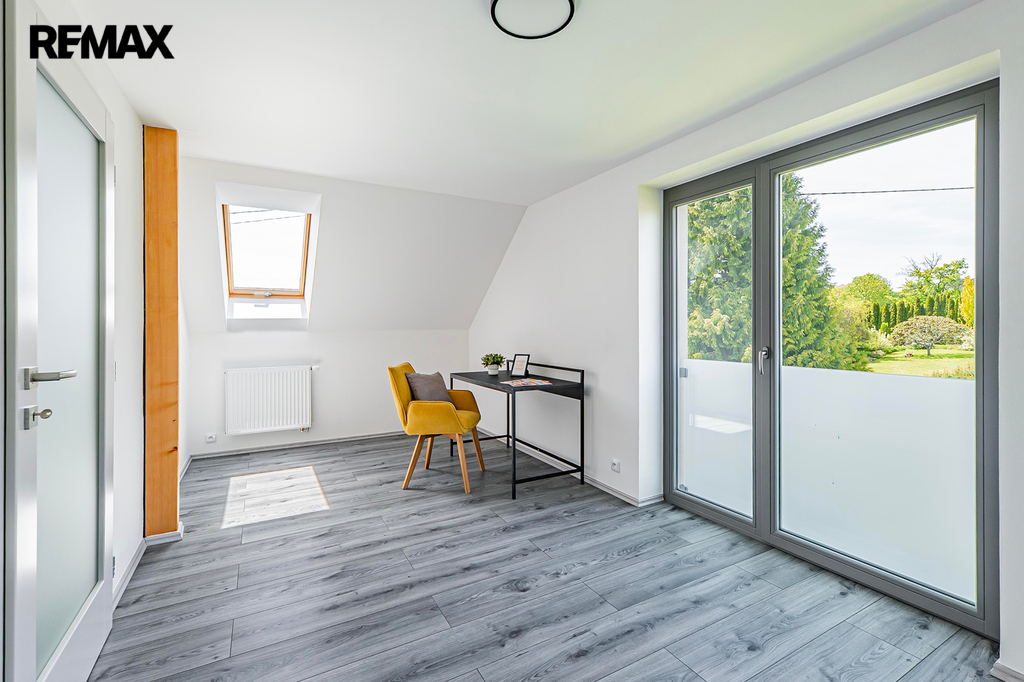 Součástí domu je také garáž a pochozí půda, která vám poskytne další úložný prostor.