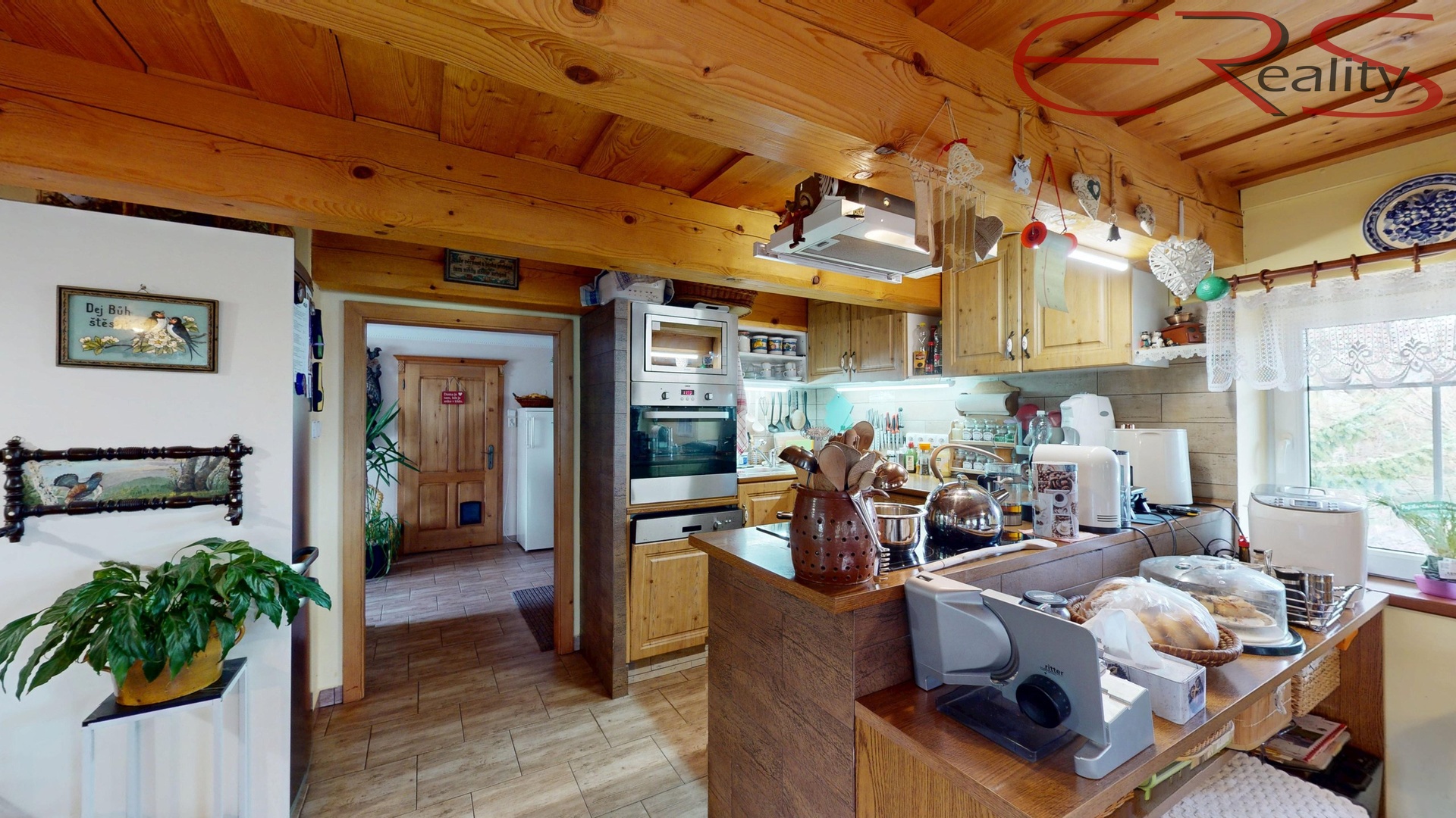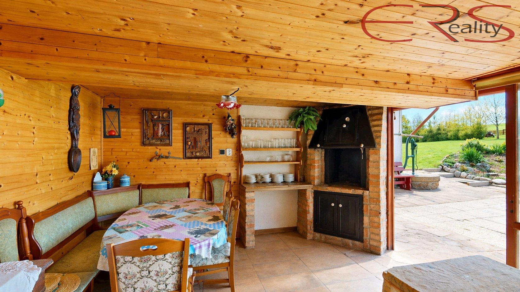 Uvnitř najdete podlahové vytápění, tepelné čerpadlo, krbová kamna s výměníkem a solární panely pro ohřev vody. Jinými slovy, dům umí být útulný, úsporný a technicky chytrý zároveň. Voda je řešena jak ze studny, tak z veřejného vodovodu, takže ani v tomto směru nejste odkázáni na nálady vesmíru.