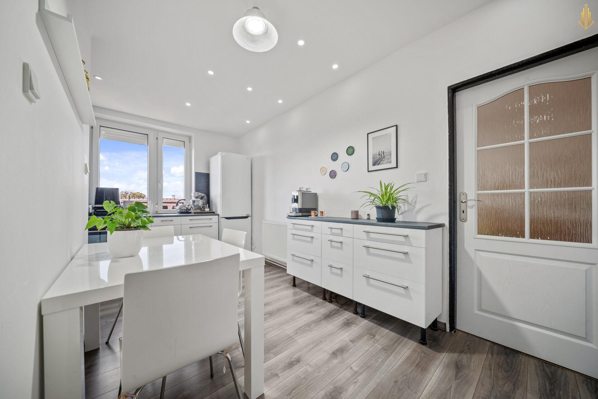 Před 10 lety realizovaná kuchyňská linka s myčkou, plynovým sporákem, lednicí a mikrovlnkou, dvojitá okna, podlahy a snižování stropů se zateplením