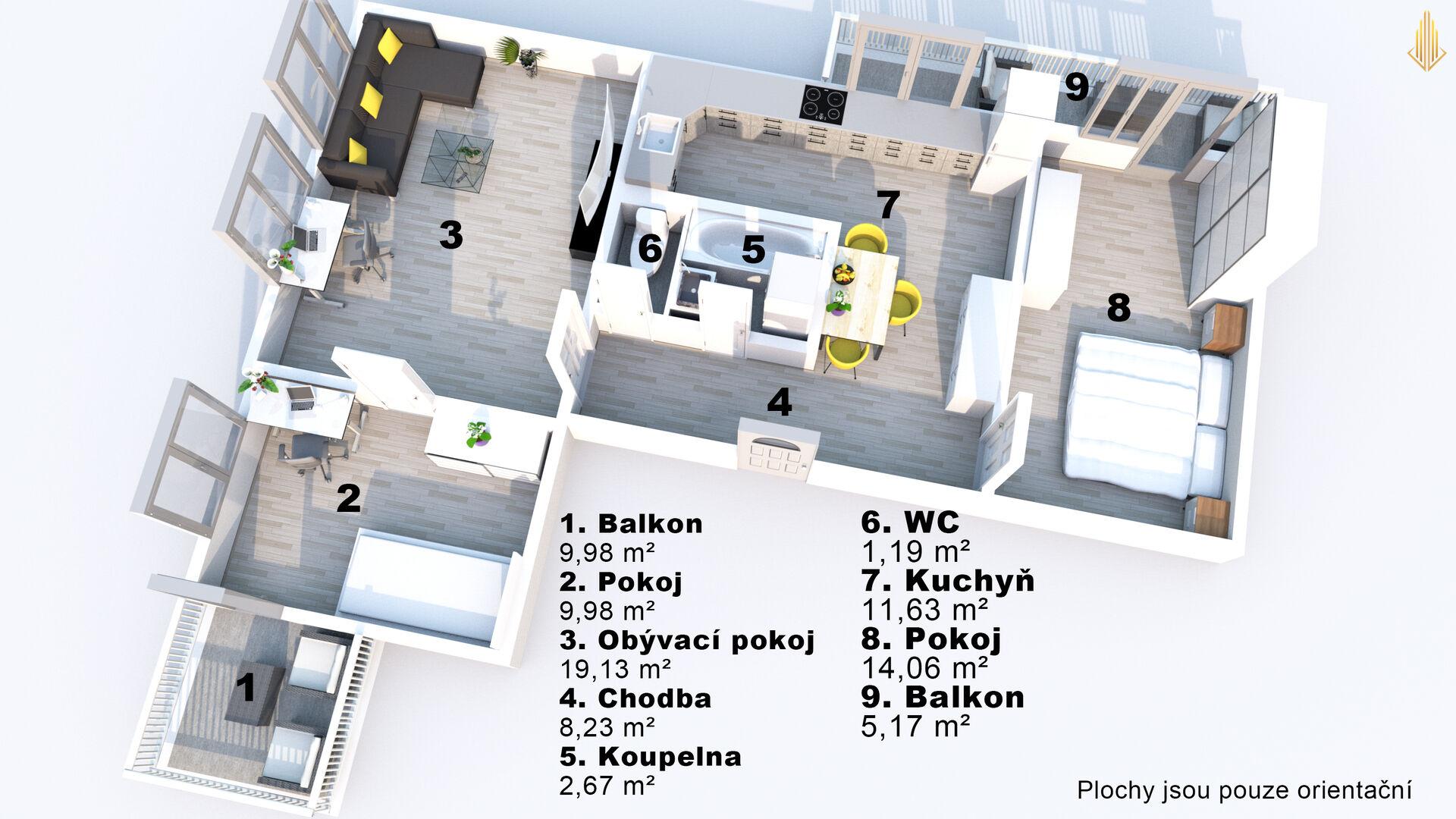 - Dispozice bytu: 3+1