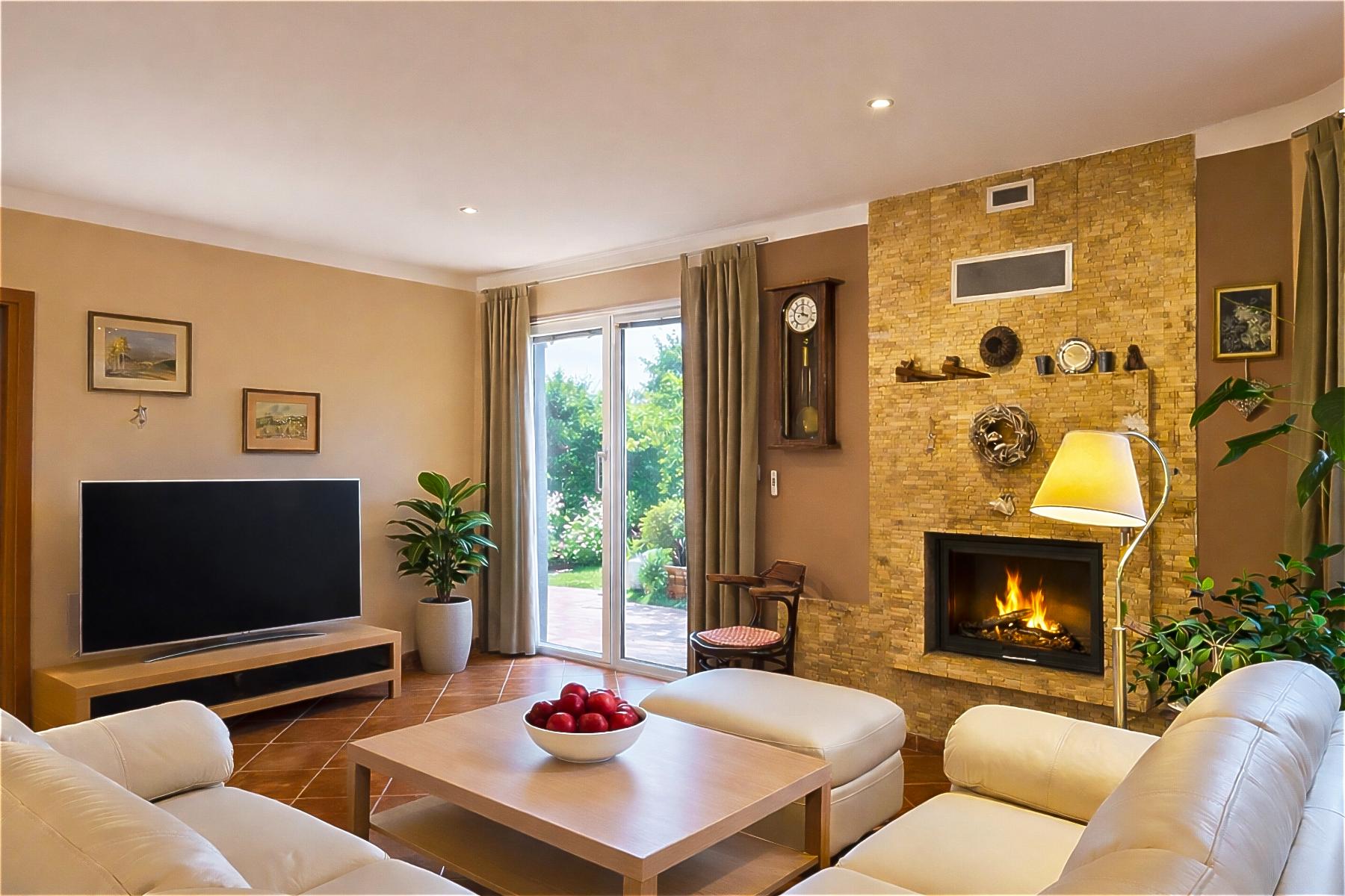 - podlahové vytápění a krb v obývacím pokoji
