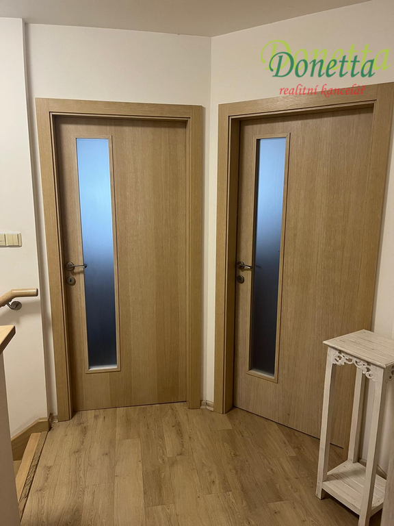 Stavba domku se rozkládá ve dvou nadzemních podlažích a je ve velmi dobrém stavu. V přízemí se nachází vstupní chodba, obývací pokoj propojený s kuchyňským koutem, technická místnost spojená s pracovnou a koupelna se sprchovým koutem, toaletou, umyvadlem a prostorem pro pračku spolu s elektrickým bojlerem. Příkré schodiště vede do podkroví, kde jsou umístěny jeden větší pokoj a dva menší pokoje. Další koupelna disponuje dvěma umyvadly, vanou a toaletou. V jednom z pokojů se nachází vestavěná skříň, ostatní pokoje jsou prázdné a připravené k zařízení dle vlastních představ.